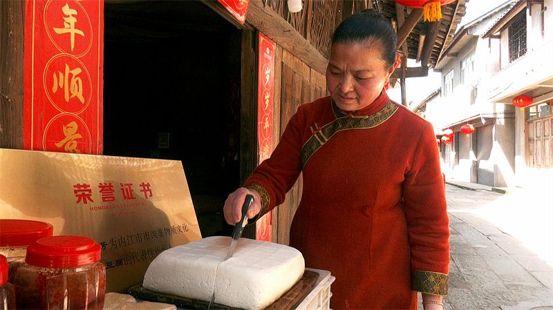 此外,电视剧《月是故乡明》、大型纪录片《中国影像方志》在罗泉取景并登陆央视黄金档,《漫步罗泉古镇》一文在《人民日报海外版》刊登,高铁读物《资中风物志》收录罗泉古镇风物。一系列宣传推广,让罗泉豆腐和古镇的知名度持续攀升,这门千年技艺正以全新姿态,迎接更多人的到来。