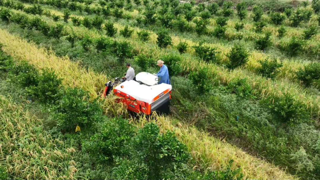 结果让前来看稀奇的农户“惊掉了下巴”:“果园里面种稻子,我还是第一次见到,相当于不影响柑橘,多‘捡’了近千斤粮食出来!”大家你一言我一语,而这套创新种植技术已经交出了一份沉甸甸的丰收答卷。