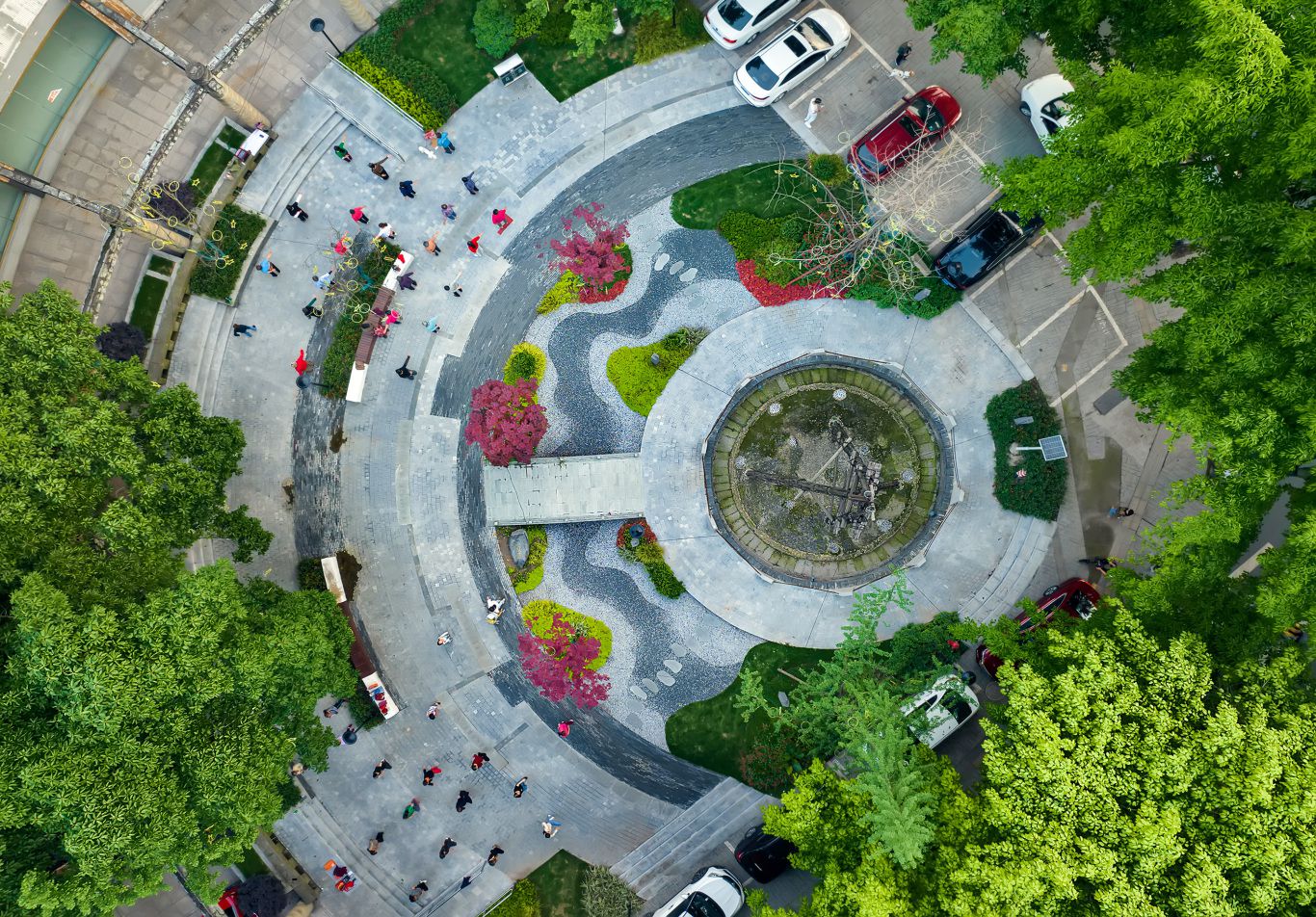 晨光熹微中,四川省自贡市自流井区檀木林街角的“檀木林园”已渐渐热闹起来。白发苍苍的老人在石桌上廊下静坐,年轻妈妈推着婴儿车漫步花径,背着书包的学生走过“冠军从这里起飞”的红墙——这个新扩建而成的800平方米空间,正以“口袋公园”的新身份,重新定义着城市与人的情感连接。