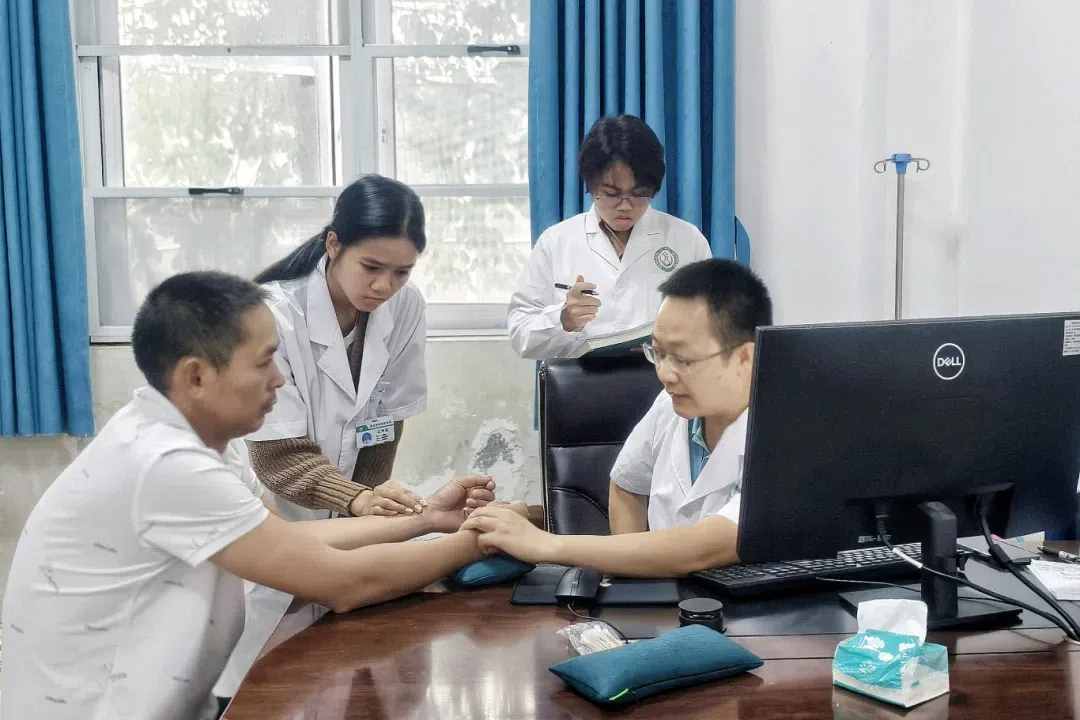 第三批雅安中医专家援柬医疗团成员陶建辉为患者进行诊疗