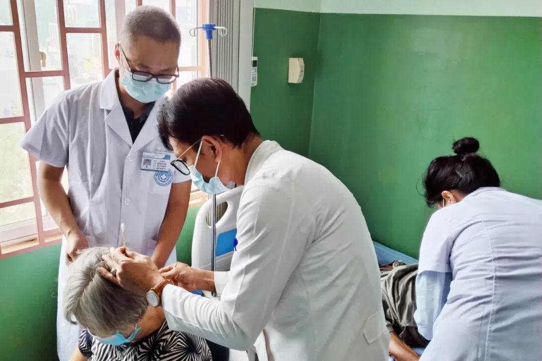 援柬医疗团成员江成鹏为柬埔寨患者进行治疗