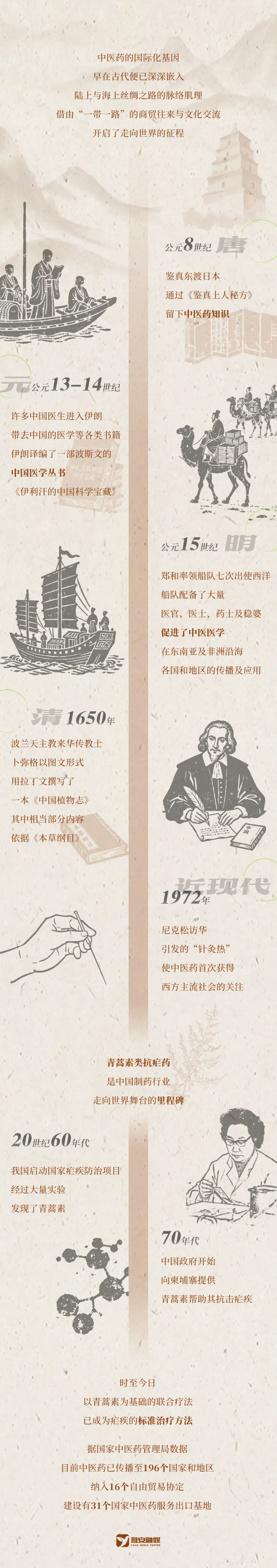 中医药的海外足迹,本就是一部文明互鉴的史诗。秦汉时,张骞凿空西域,大黄等药材随驼铃西去;盛唐间,日本遣唐使捧回《黄帝内经》,催生汉方医学;宋元时期,阿拉伯商船载着香药典籍穿梭丝路;明代郑和七下西洋,180名医官为30余国祛除病痛……驼铃远去、帆影消散,中医药的传播却从未停步。