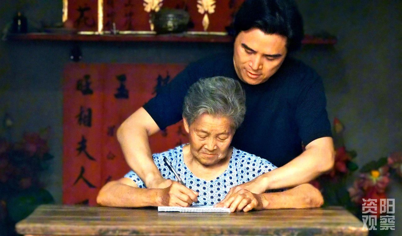 最动人的一幕,是“教母亲写字”。母亲因取快递只能按手印而自卑。彭强刚便连夜手绘“象形字帖”,把笔画比作“小树枝”和“玉米秆”。他宽厚的手掌握着母亲颤抖的手,一笔一划,没有一丝催促。“妈,不着急,我们慢慢写。您看,这一竖比昨天直多了。”