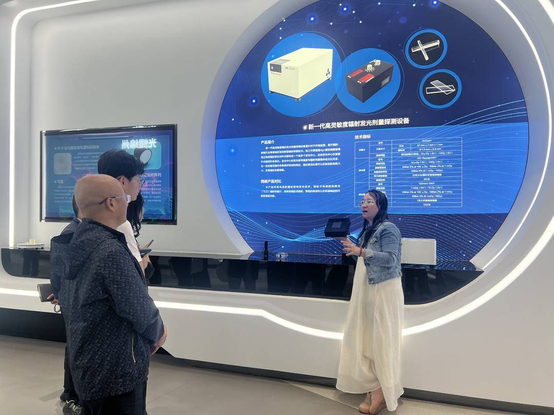向采访团介绍辐射发光剂量探测设备(陈静 摄)