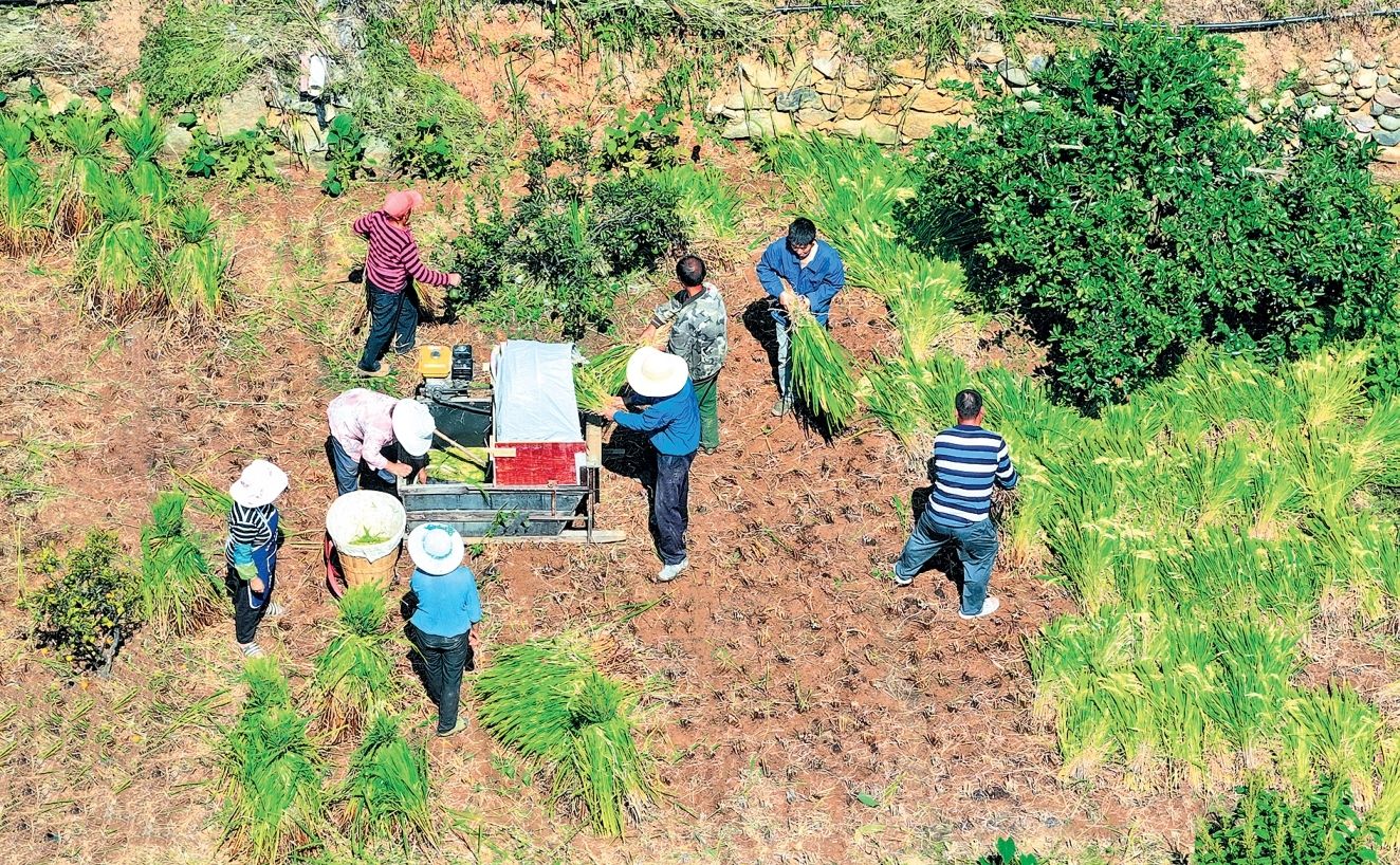 石棉县新棉街道岩子社区收割节水抗旱稻