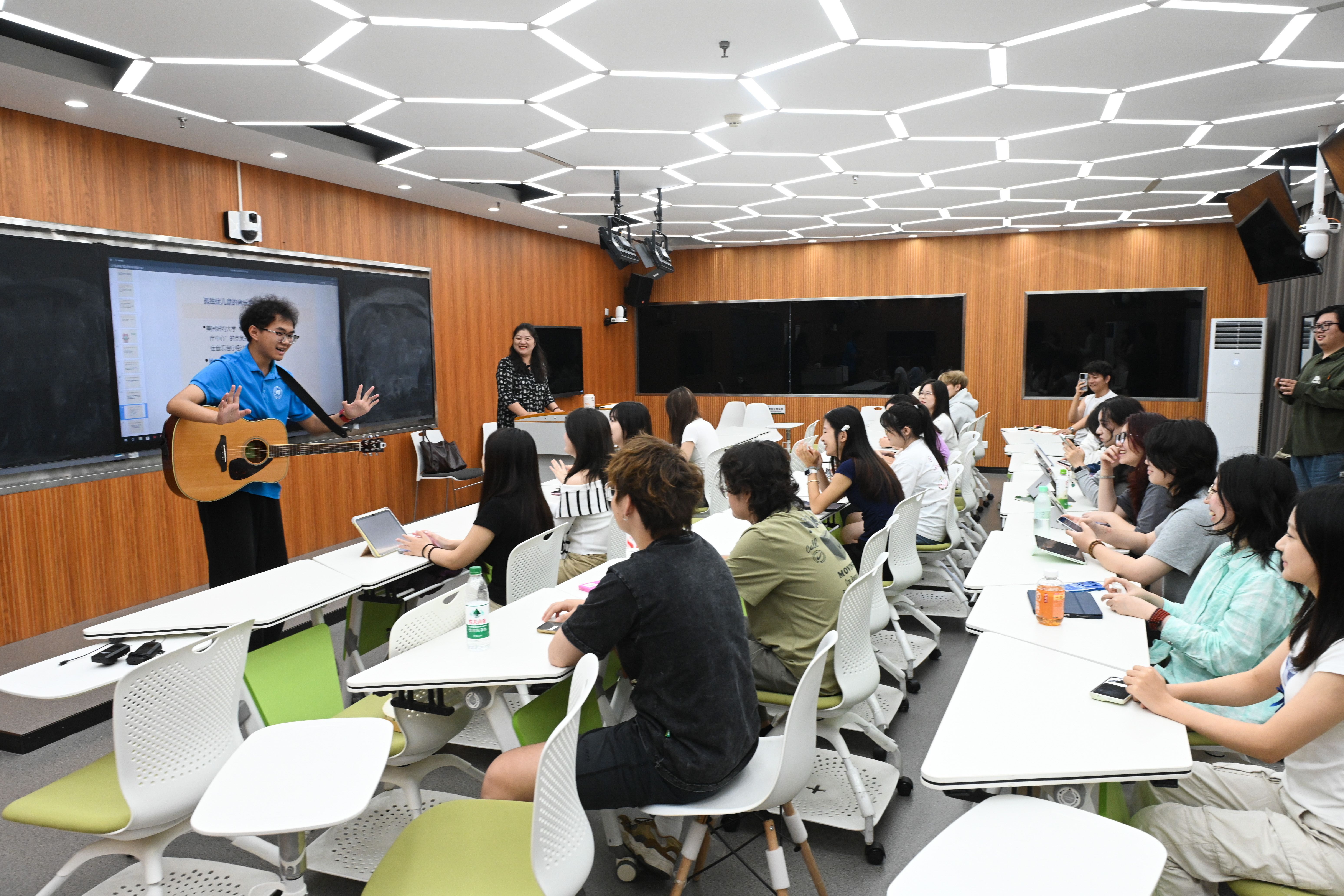 最具挑战性的是临床实践。大三学生邱语涵还记得那个特殊的孩子——起初对音乐毫无反应,经过几次节奏游戏和乐器互动,终于主动敲响手鼓,露出久违的笑容。“那一刻,我真正理解了音乐作为‘桥梁’的意义。”