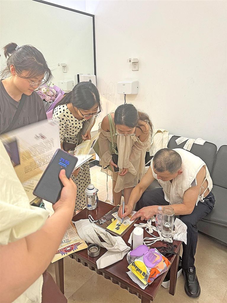 演出结束后,许多年轻观众到后台找“包公”饰演者签名。