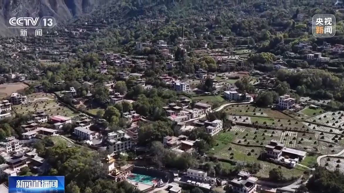 村落的整体风貌都延续了传统格局,藏式民居巧妙融于自然环境中,道路依山就势,梯田也散落其间,一派和谐景象。