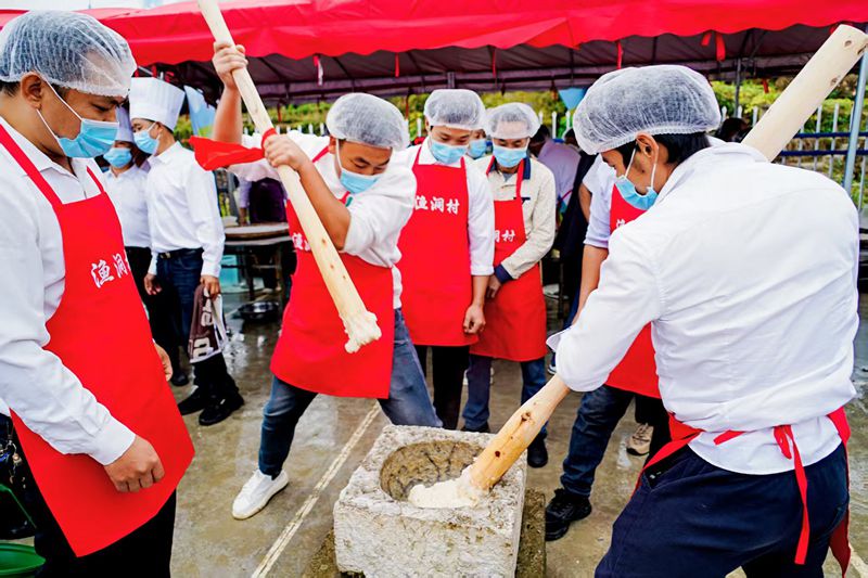 “农趣庆丰收,‘猕’力赋能新乡村”农事运动会开赛,猕猴桃接力、多人拔河抢装猕猴桃、趣味运南瓜等项目,让村民在竞技的欢声笑语中,体验劳动带来的乐趣;晚上举行的“声动丰收季,歌赞新农人”2025年丰收好声音大奖赛,新农人争相登台献唱,用歌声表达对丰收的喜悦与对家乡的热爱;“糯香裹丰收,糍粑宴乡情”是一场民俗活动,当地村民与外地游客互动,打糍粑、品糍粑宴,在共同捶打糯米、分享美食的过程中,体验传统民俗的魅力。