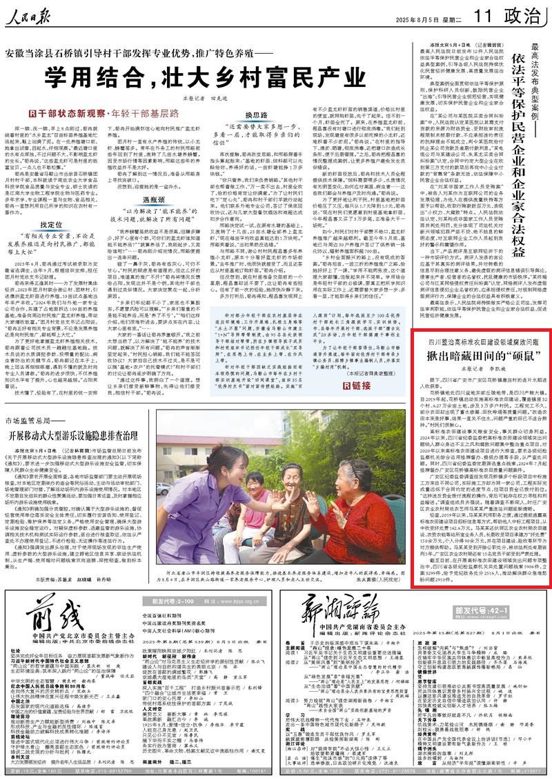 高标准农田建设事关粮食安全,事关群众切身利益。2024年以来,四川省纪委监委把高标准农田建设领域突出问题纳入群众身边不正之风和腐败问题集中整治重点项目,对2020年以来高标准农田建设项目进行大排查,要求各级纪检监察机关综合运用挂牌督办、提级办理等手段,从严查处问题。同时,四川省纪委监委定期筛选重点线索,2024年7月起挂牌督办广安区花桥镇高标准农田质量问题案件。