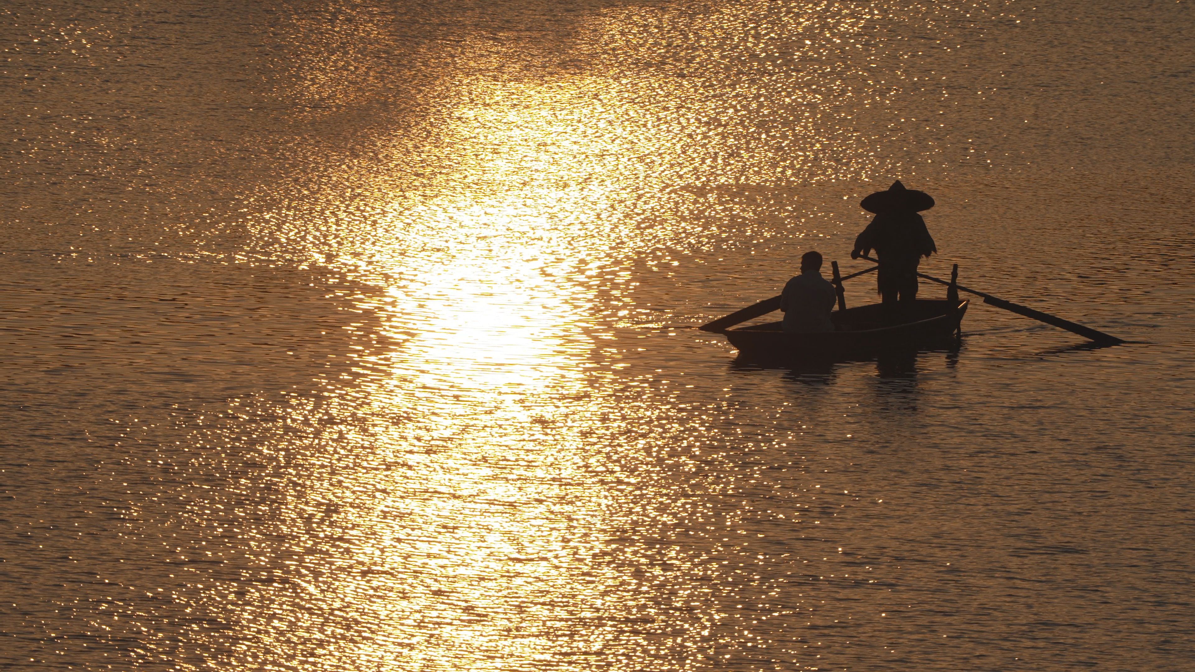 纪录片主角乔纳森·基特泛舟湖上。