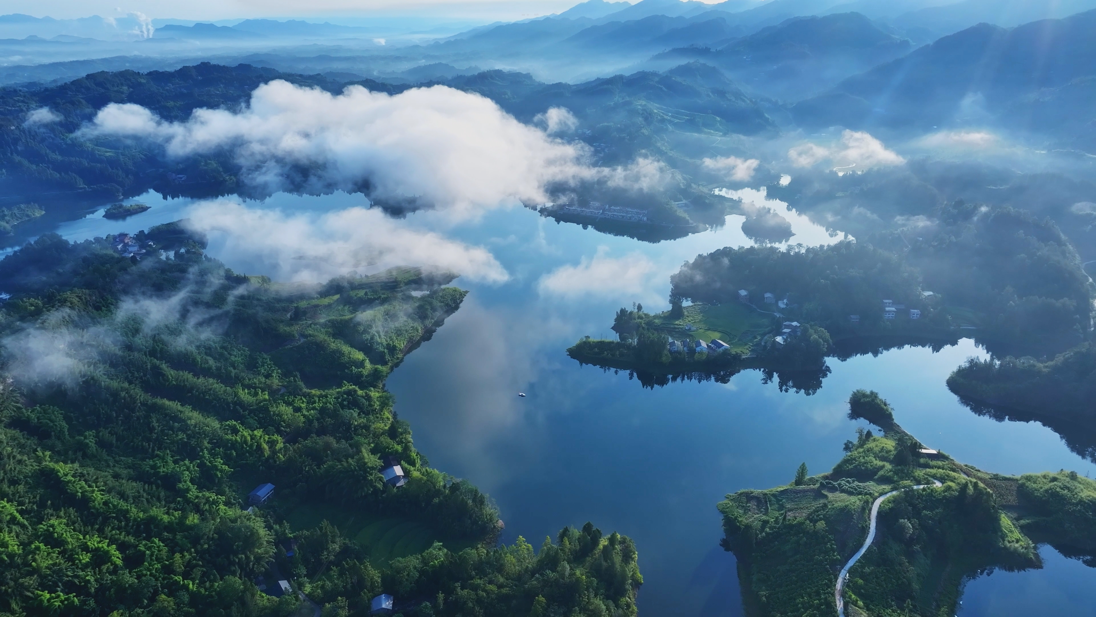 如今,九龙湖重焕光彩,四周群山环抱,郁郁葱葱;湖岸村舍点点,星罗棋布;湖面烟波浩渺,鱼肥水美,成了当地群众和达城市民“乡村游”“康养游”的一大去处。