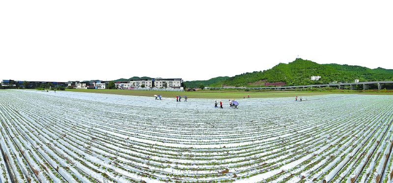 锦屏镇中坝社区蔬菜种植基地,村民种植萝卜。周亮摄