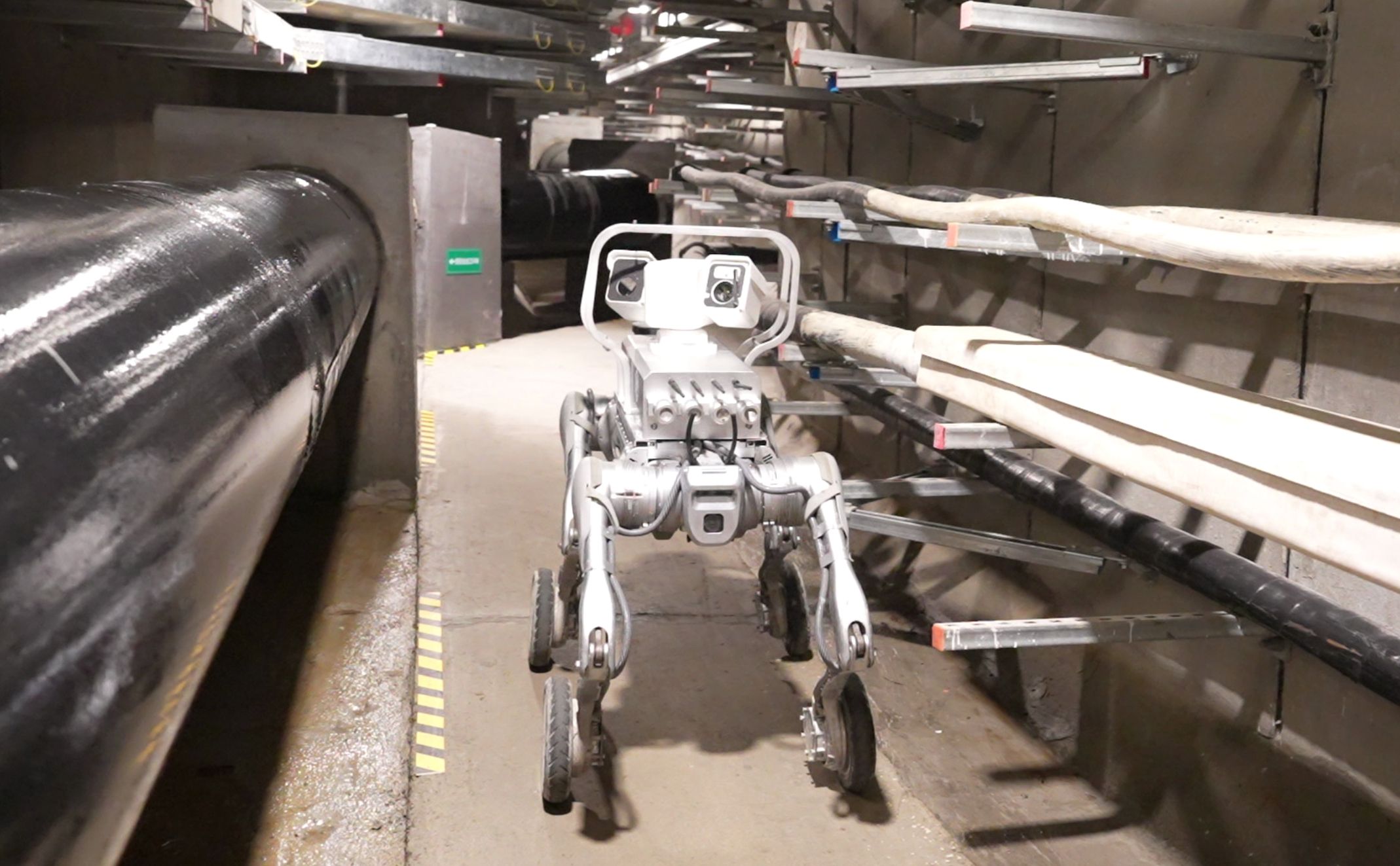 10月23日,记者跟随工作人员走进日月大道综合管廊。刚进入廊内,就看到一只智能巡检机器狗正沿着预设路线行进,银灰色的机身下,四条带轮的机械腿稳健而灵活,遇到前方障碍时,它会自动调整线路,轻松越障,丝毫没有卡顿。