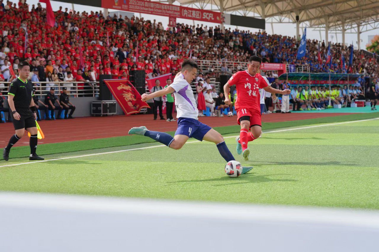 在9月27日的“川超”川南赛区首轮比赛中,资阳中国牙谷队客场对战内江重龍酒队。赛场上,内江球迷高喊“资阳资阳,欢迎回家”,资阳球迷则回应“谢谢内江”;“资中血橙”与“安岳柠檬”紧紧相拥,尽显兄弟俩的亲密无间……一呼一应间,竞技的紧张感消融,只剩下人与人、城与城的温情共振。