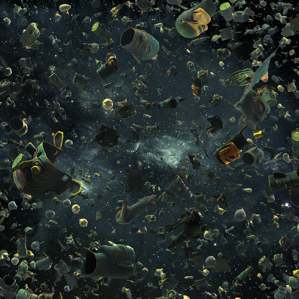 在“星穹惊飞”篇章,观众手持数字火把晃动,即可召唤神鸟在直径20米巨型穹顶之上盘旋翱翔;“器象万千”篇章里,陶罐、金面具、玉璋、青铜神树等珍贵文物通过数字技术化作视觉奇观,器物和自然天象通过真实采样,与音效和数字拟音交织成一场跨越时空的天地和鸣;“普照万物”篇章中,观众可跟随太阳神鸟的光影轨迹,见证日食从混沌到光明复现的恢宏场景,感受古蜀先民太阳崇拜的深刻文化内涵。