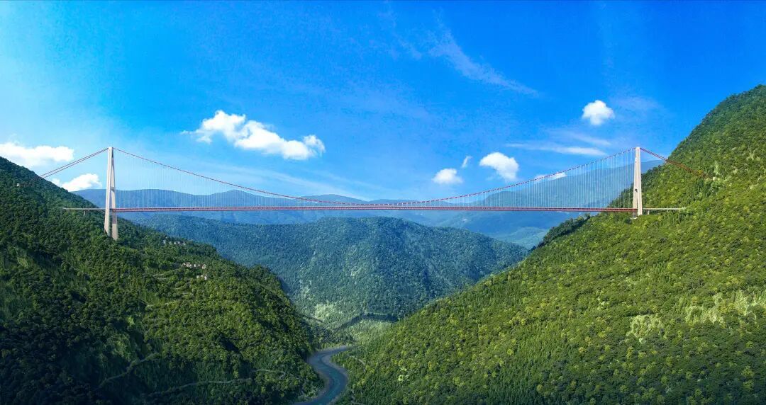 泸沽湖特大桥全长1922米,主跨1680米,拥有“两首创、三高、四最”的工程特质:U型回转式隧道锚与组合结构索塔两大首创;高海拔、高落差、高地震烈度的“三高”挑战;以及世界最大跨径山区悬索桥、空间缆悬索桥、U形隧道锚悬索桥、中跨主梁变宽悬索桥四项“世界之最”。