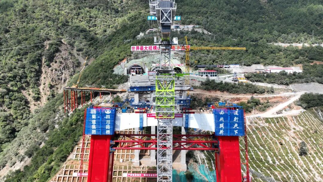 与此同时,西昌岸索塔高度成功突破100米,向228米的塔顶目标稳步推进。该索塔采用全球首创的A形钢管&钢箱-混凝土组合结构,融合钢材抗拉与混凝土抗压优势,有效应对山区强风、大温差与复杂地质。