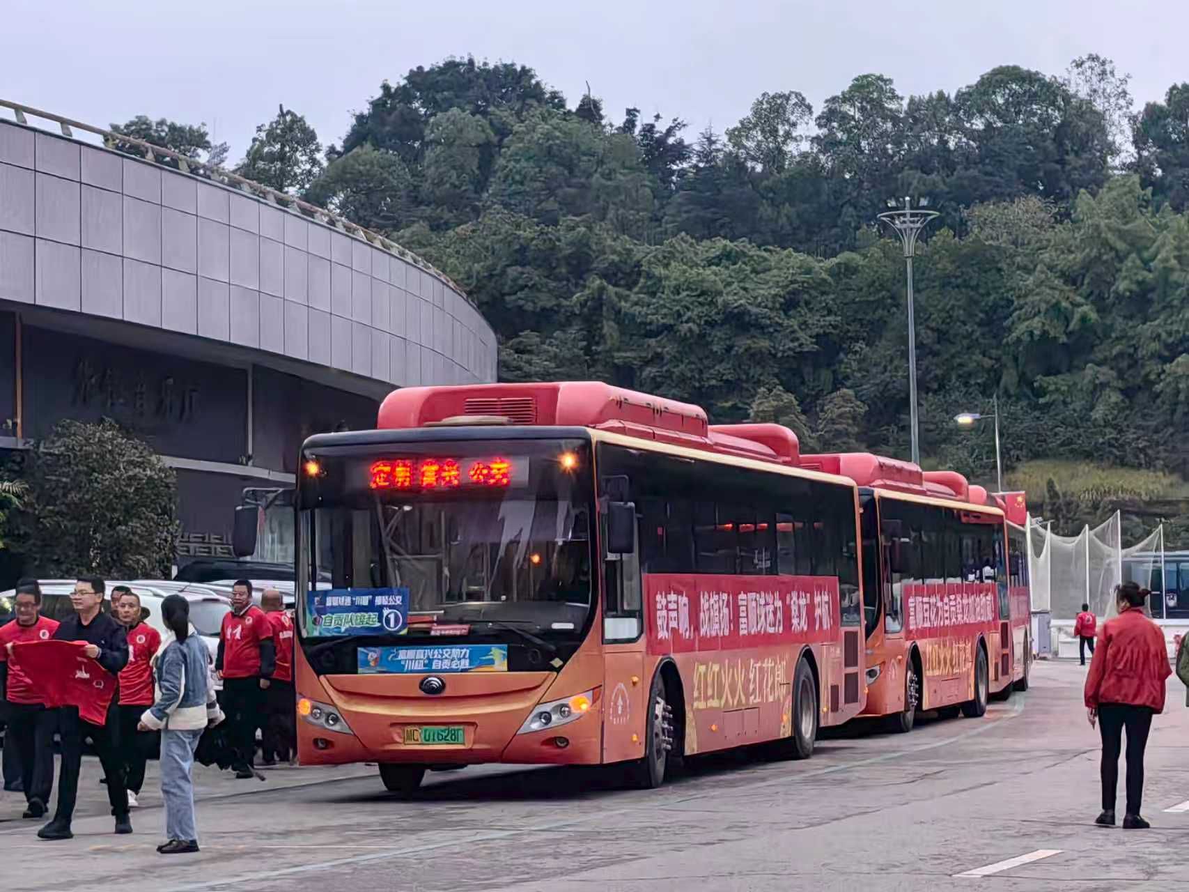 据公司负责人介绍,29日17时,公司提前安排10台公交车,在县文体中心五环处开始接运300名球迷、助威团及志愿工作人员。为了营造喜庆热烈氛围,公司特意组织红色公交车,每台车前挂上给自贡队助威的标语,车身张贴加油、助威的横幅。同时,为确保服务精准高效,公司安排专人跟车为大家提供暖心服务,并引导进场,然后等到比赛结束后又把大家安全顺利送回富顺,实现出门即上车、下车即观赛、赛后即回家的无缝衔接,深受广泛赞誉。