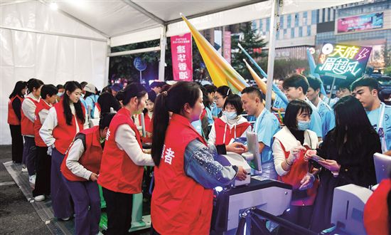 赛场秩序维护、应急医疗辅助、人流疏导等,志愿者们从容应对各类突发情况。“我们不仅要帮球迷解决问题,更要成为文明观赛的‘引导员’。”志愿者李佳欣说,培训时老师反复强调,“一句温馨提醒、一次主动帮忙,都是在传递眉山的文明风尚。”