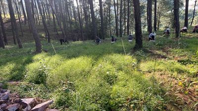 然而,将时光拨回五年前,这里却是另一番景象。周世春的手机里存着两张对比图:2021年的尔舞山,松林稀疏,林下枯枝落叶堆积,火灾隐患突出;2025年的今天,同一片林地已变成层次分明的“立体农场”,林下套种着多种高价值中药材,林间步道旁的喷淋系统正匀速洒水。任谁都没想到,五年前的这里,还是普通松林,如今,已成为了聚宝盆。