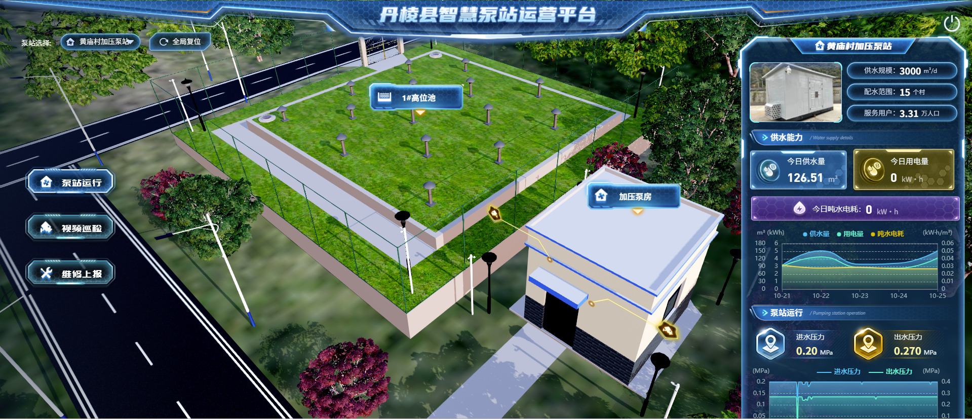 曾经,丹棱县农村供水长期面临“夏季用水紧张、管网漏损难控、应急响应迟缓、服务体验不佳”等现实难题。基于此,2023年9月至2024年4月,丹棱县投资700余万元(其中数字孪生专项建设约400万元),聚焦全县农村供水痛点问题,启动农村供水信息化智能化项目建设,搭建丹棱县全域智慧农村供水云平台,制定并实现“12345”的建设目标(建设一套系统,实现全面监管;串联两座水厂,承载民生需求;实现三化协同,提升服务质量;增强四预共建,保障供水安全;实现五域共治,共谱水利新章)。