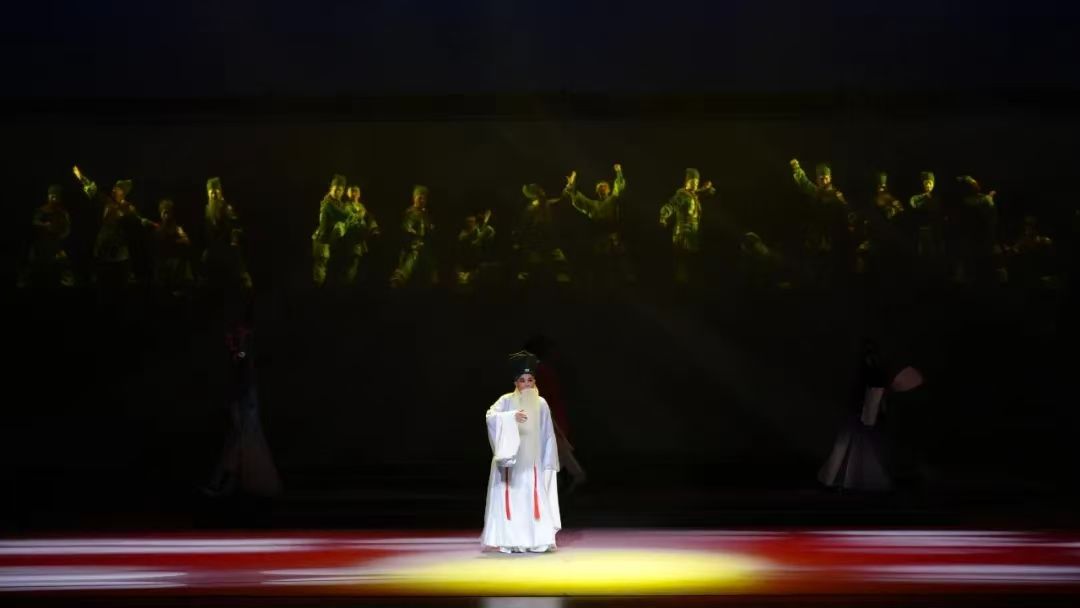 川剧的写意美学在此被运用到极致。青年演员以醇厚的川腔演绎《赤壁赋》中的千古名句,配合水袖翻飞、身段流转,将苏东坡的豁达与洒脱具象化;当剧情来到“黄州悟道”段落,灯光骤暗,仅一束追光聚焦于独坐“雪堂”的东坡,极简的舞台设计与演员细腻的表情,将人物内心的迷茫与顿悟展现得淋漓尽致。这种充满“假定性”的艺术表达,既契合川剧的写意美学,又精准捕捉了苏东坡“一蓑烟雨任平生”的生命哲学,让观众在唱腔与身段间,读懂这位巴蜀文化名人笑对挫折的人生态度。