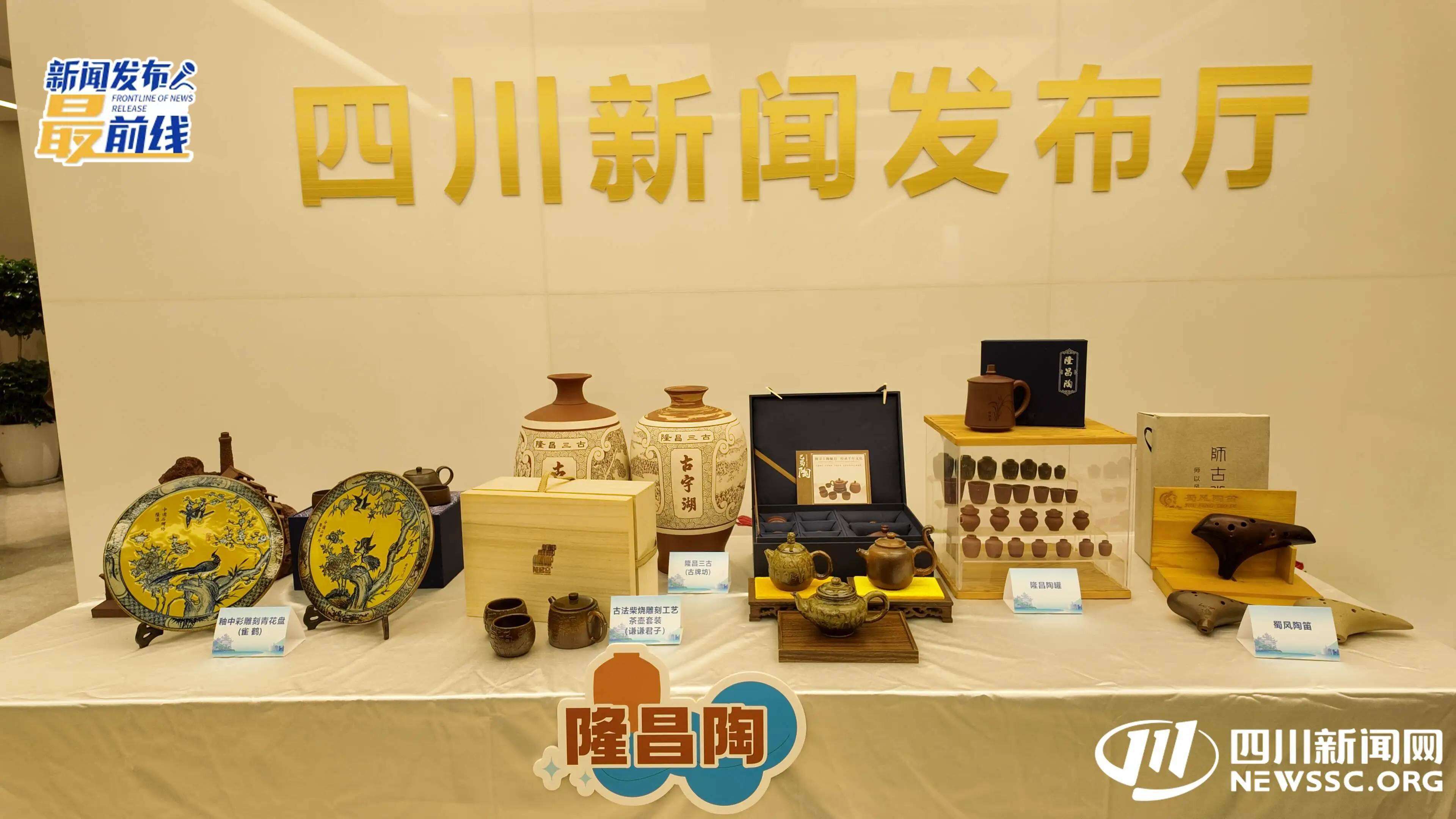 新闻发布会结束后,隆昌市委副书记、市人民政府市长任伟来到隆昌土陶的展位前,面对记者们的镜头侃侃而谈。“前山矿石后山炭,中间泥土做陶罐”。这句隆昌民谣诉说了隆昌玻陶的渊源。“隆昌陶的历史最早可追溯到汉代。发展到了明朝,也就是以隆昌之名建县之时,我们的制陶工艺达到了顶峰。”任伟身后展出的隆昌陶器和陶制艺术摆件,便是国家地理标准产品隆昌陶的部分代表作。
