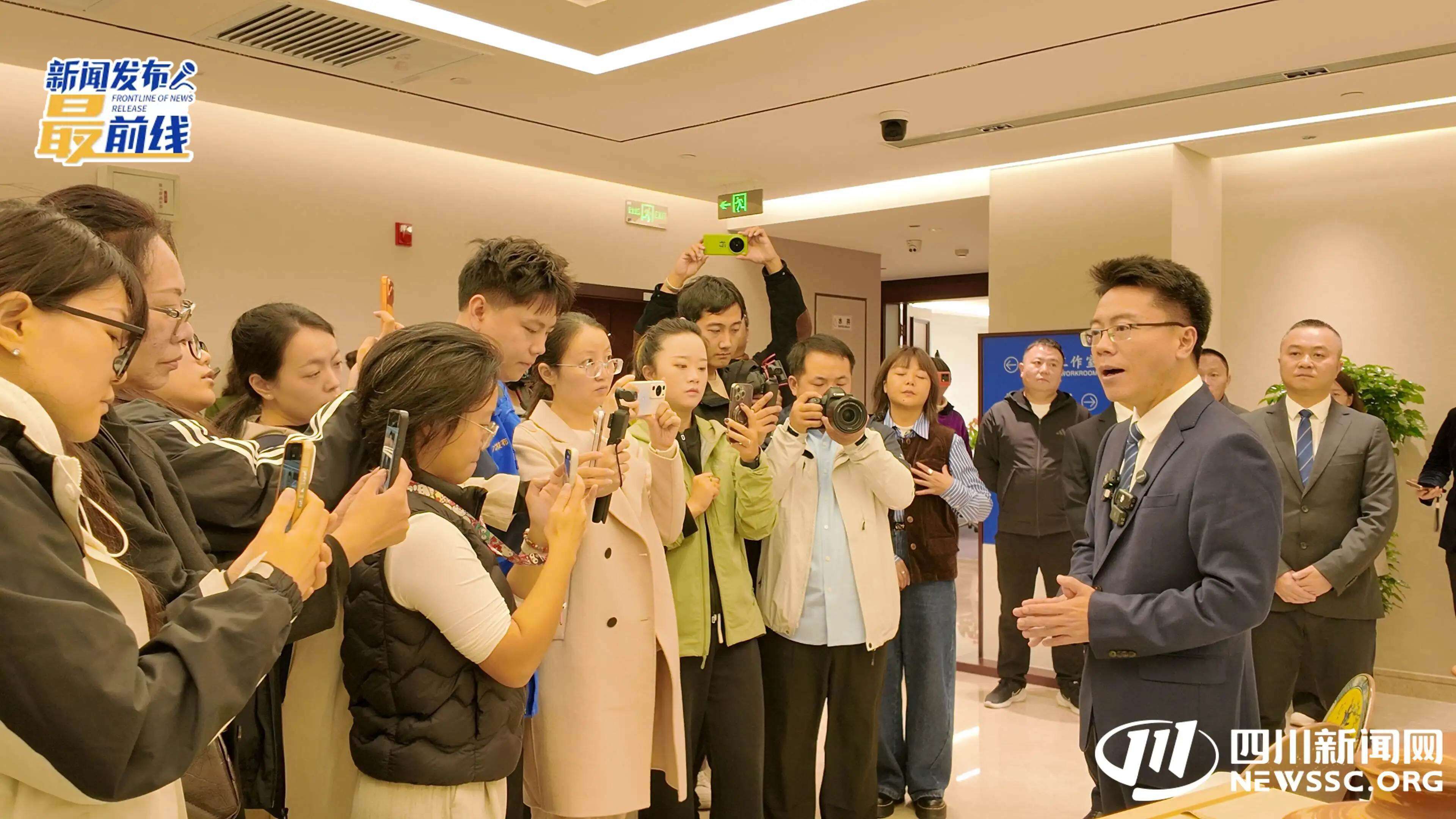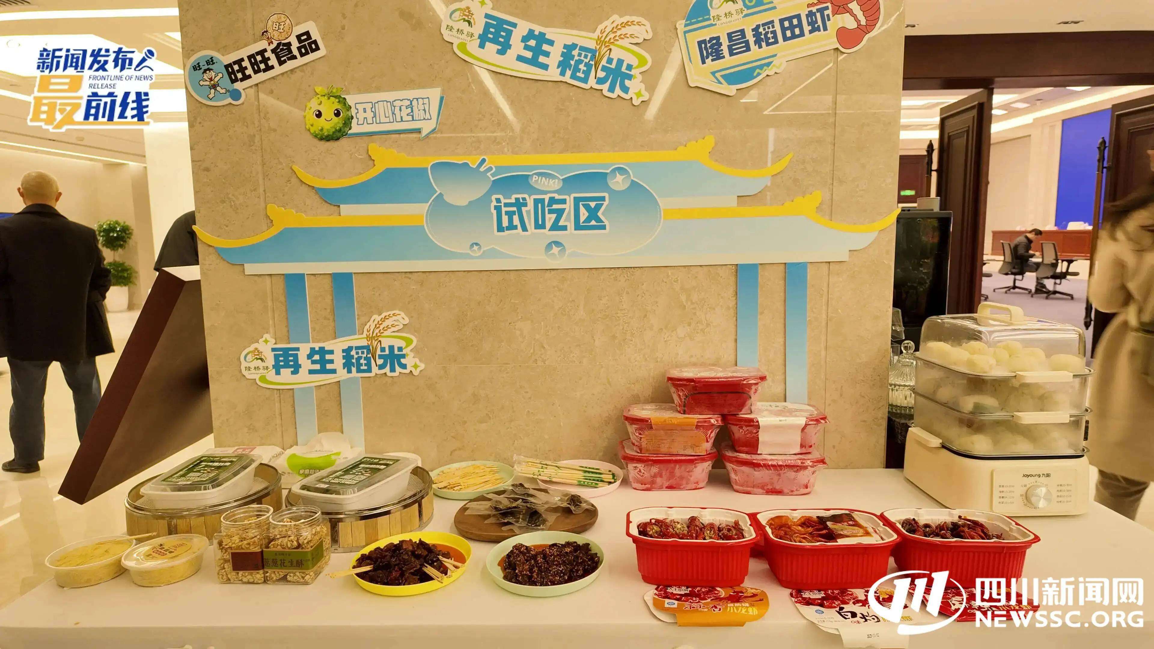 “哇!好香的麻辣牛肉味道。”“还有小龙虾哎,这三个味道,看起来就很巴适。”11月5日,媒体记者们的双脚踏入四川新闻大厦4楼的新闻发布厅,空间里弥漫着的美食香味,让大家忍不住开启“夸夸夸”模式。