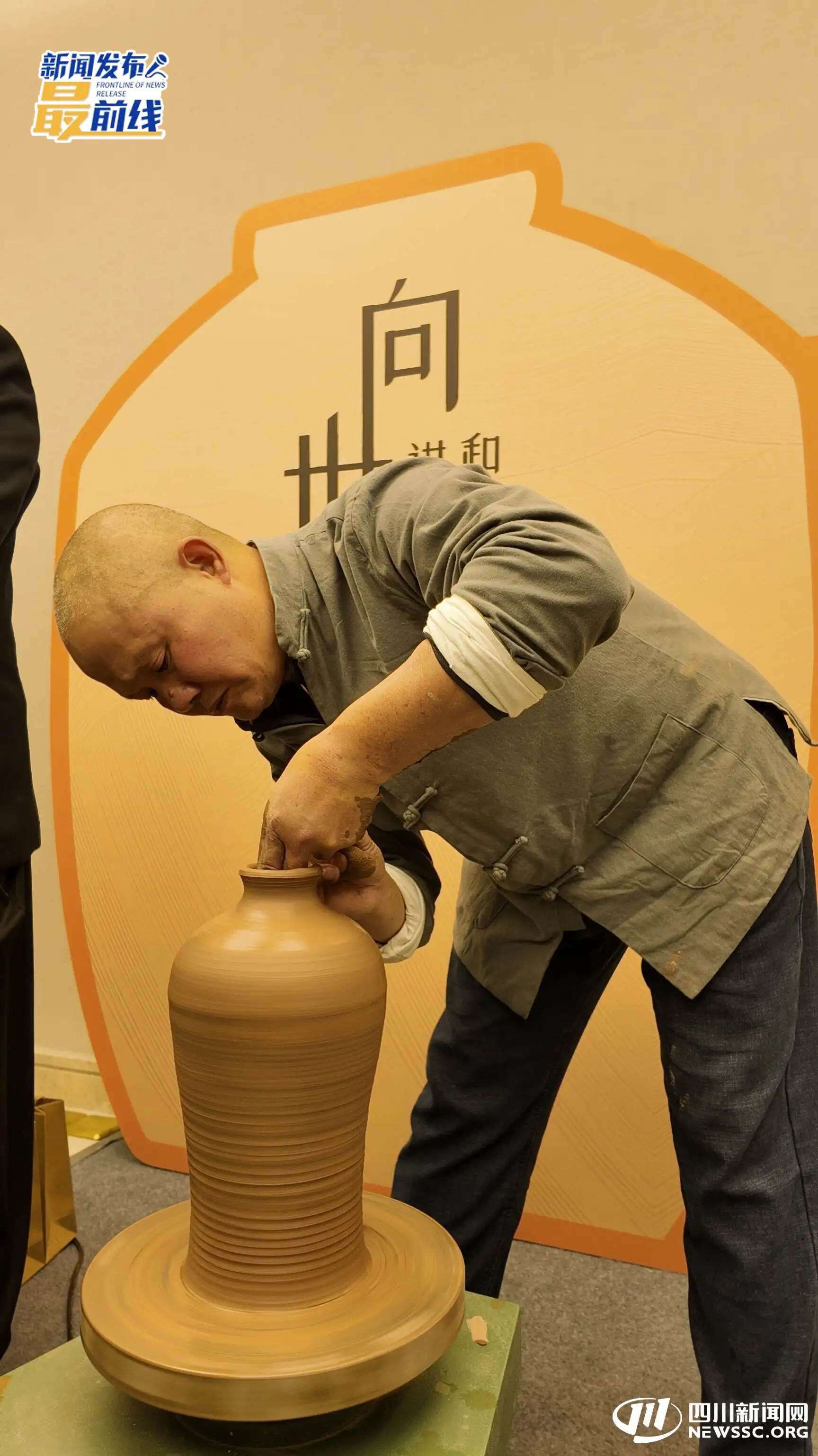 精湛的技艺,也是隆昌陶的特色优势。“制陶历史悠久,老匠人的匠心与传统的技艺和特殊手艺代代相传。”就在任伟的推荐开始前,隆昌陶的非遗传承人便在现场展示了制陶工艺,在他灵巧的双手之下,陶泥在旋转间,渐渐被揉成陶罐的形状。
