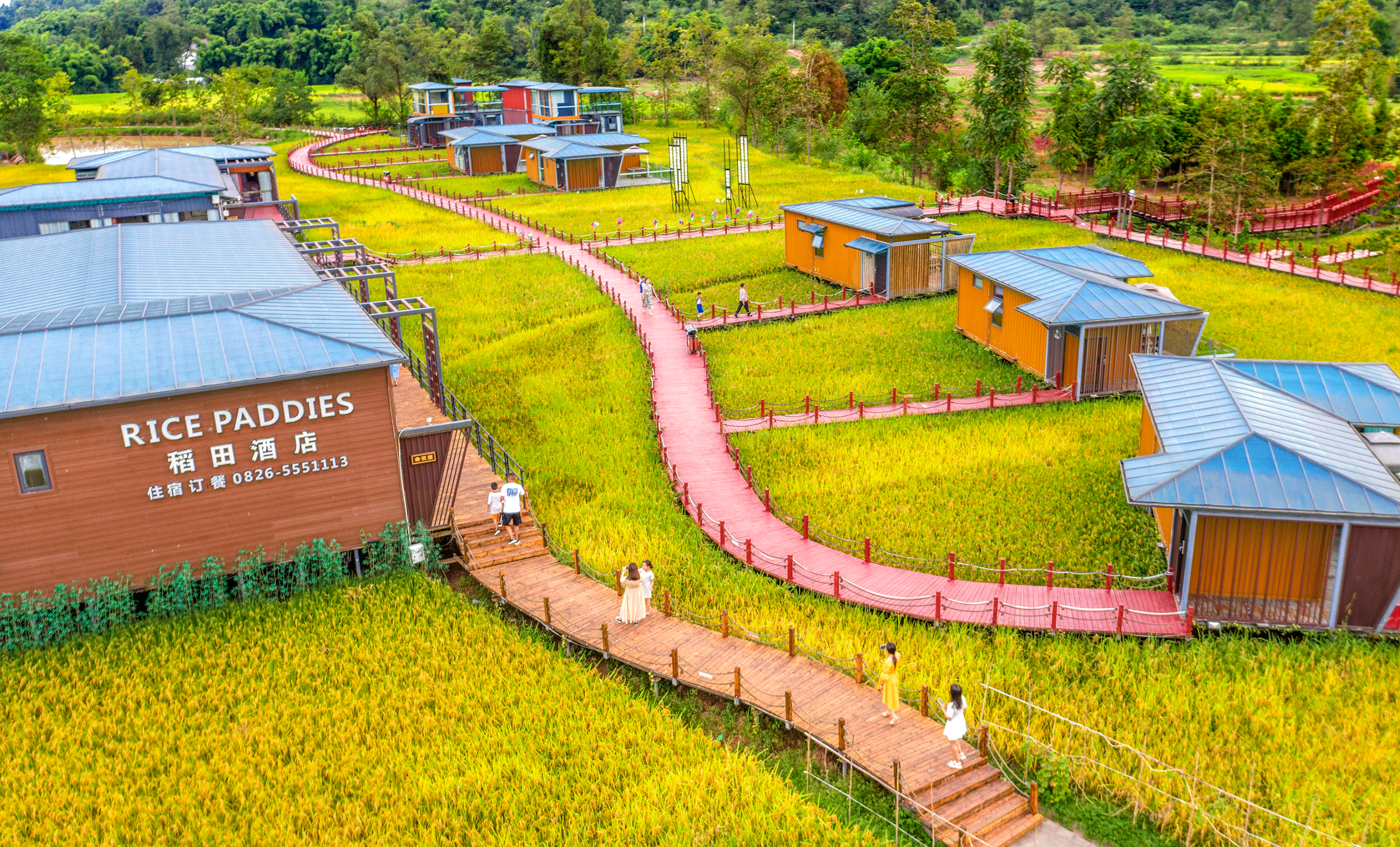 “依托稻田建酒店,一块土地实现两种收益。”岳池农家生态文化旅游区相关负责人介绍,如今“稻田+酒店”的模式,让这片土地年产值增加了50多万元。