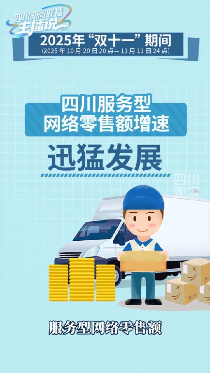 映潮大数据监测显示,2025年“双11”期间,四川网络零售额同比增长11.2%。值得注意的是,服务型网络零售额以20.1%的同比增速迅猛发展,总量达180.4亿元,在整体网络零售额中占比达到16.9%。