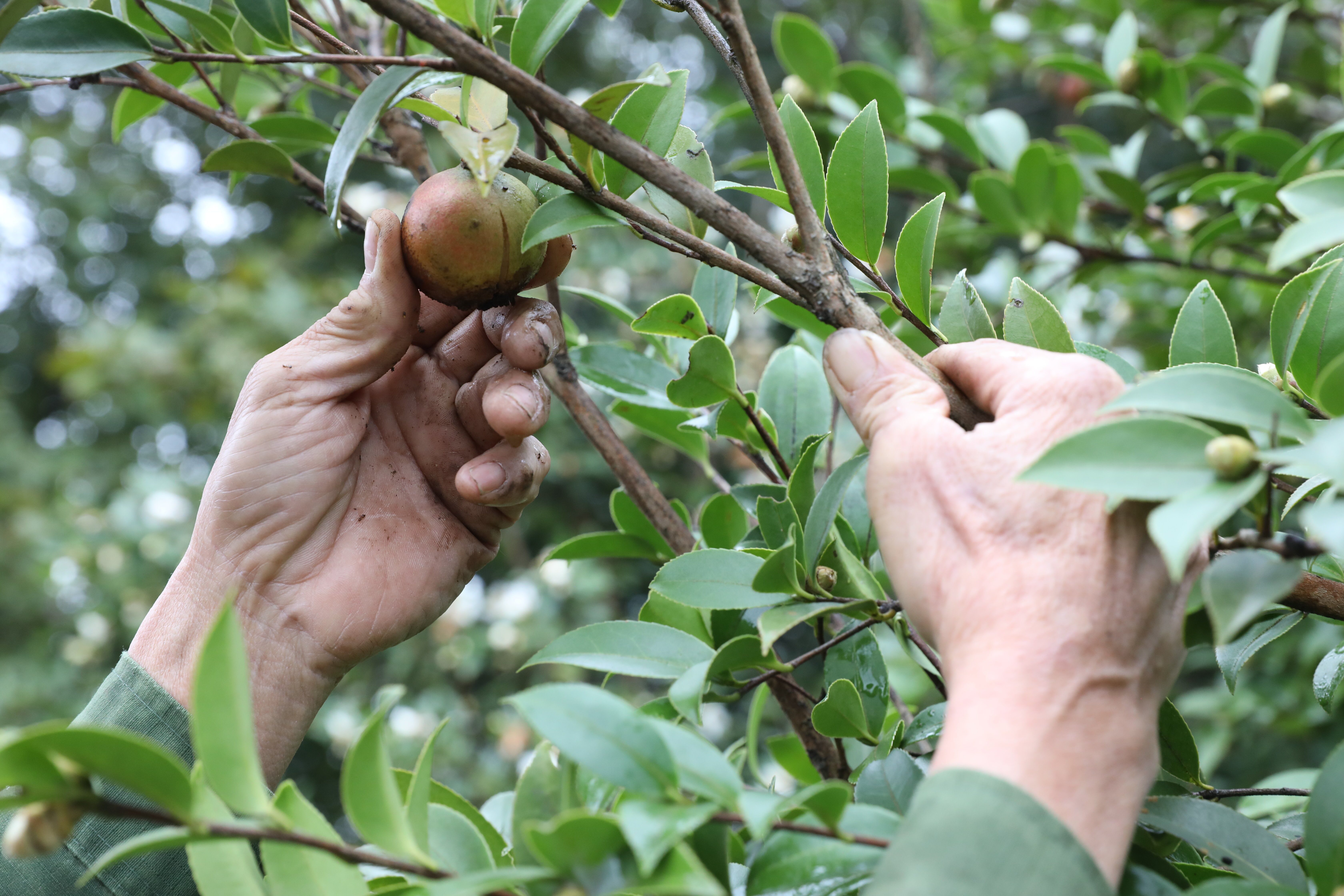 在这片生机勃勃的油茶林中,70岁的胡定华是最显眼的身影之一。“从2016年种第一株油茶苗到现在,整整十年了。”胡定华告诉记者,家里的20亩油茶林是全家主要的经济来源,这些年靠着油茶种植,生活改善了不少。“现在管护有技术员指导,采摘有合作社帮忙,每亩纯收入能有两千多元,日子越过越有奔头。”