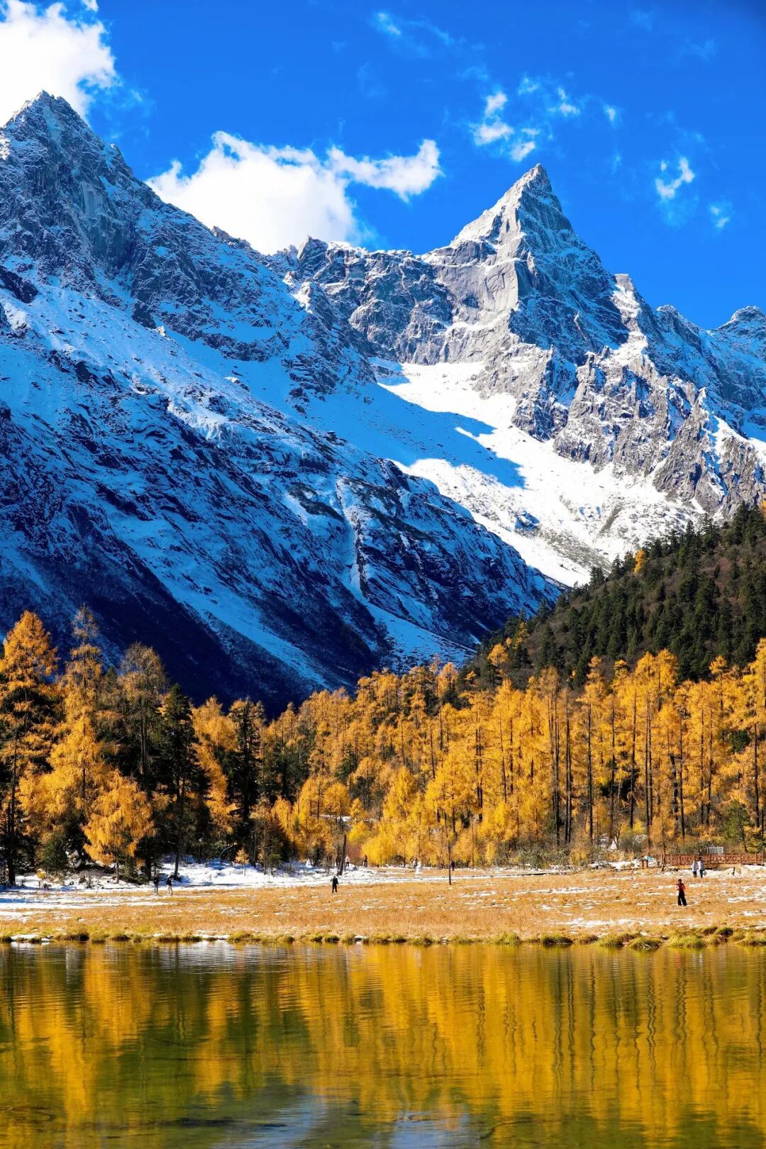 秋冬之交的毕棚沟,宛如造物主打翻的调色盘。斑斓彩林、巍峨雪山、海子瀑布、金黄草甸……每一帧都美得让人挪不开眼。