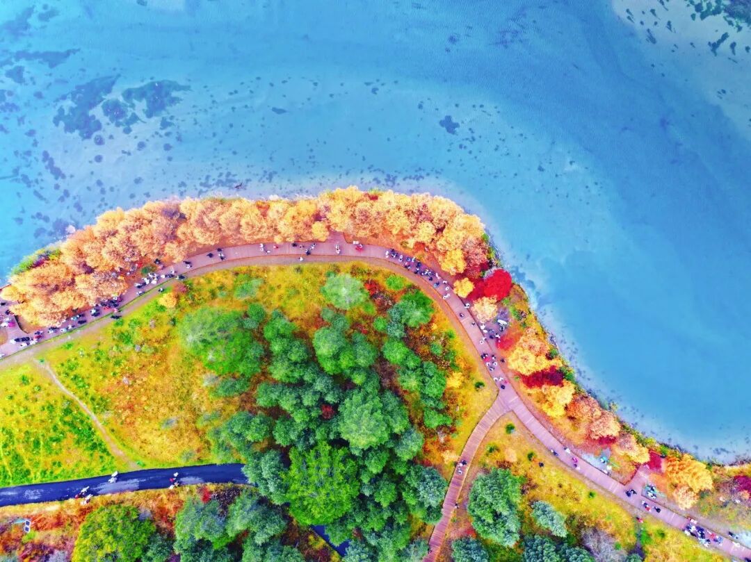 漫步其间,眼前是颜色不一的五彩森林,抬头是圣洁的雪山,“半山彩林半山雪” 的奇景,随手拍都是壁纸级画面。