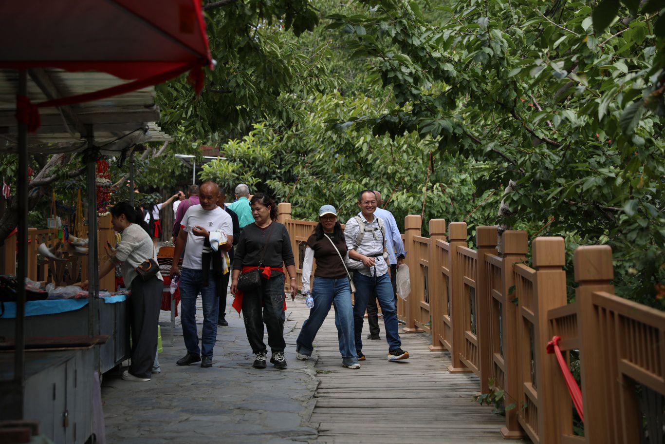 这份“共富答卷”的背后,是景区管理机制的创新突破。桃坪镇通过三十余次改革研讨,组建义警巡逻队与志愿服务队规范市场,让周边500余户果农安心设点,甜樱桃季创下推动甜樱桃销售600余吨的纪录。“以前愁果子卖不出去,现在游客多、价格好,今年光樱桃就赚了3万多!”古城村果农蒲大哥的喜悦,正是“大桃坪”共富图景的生动注脚。