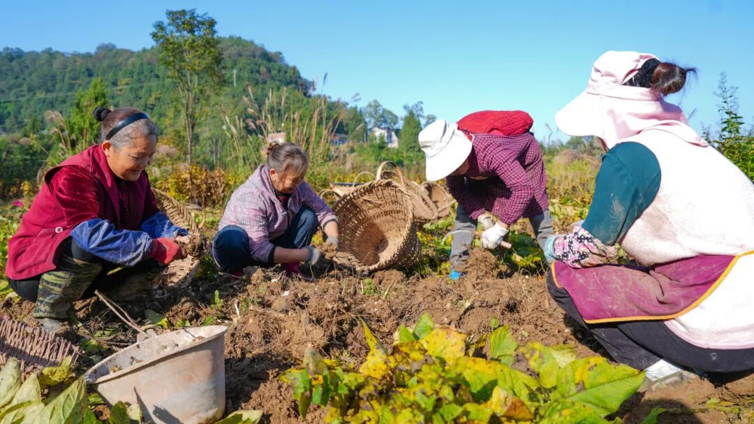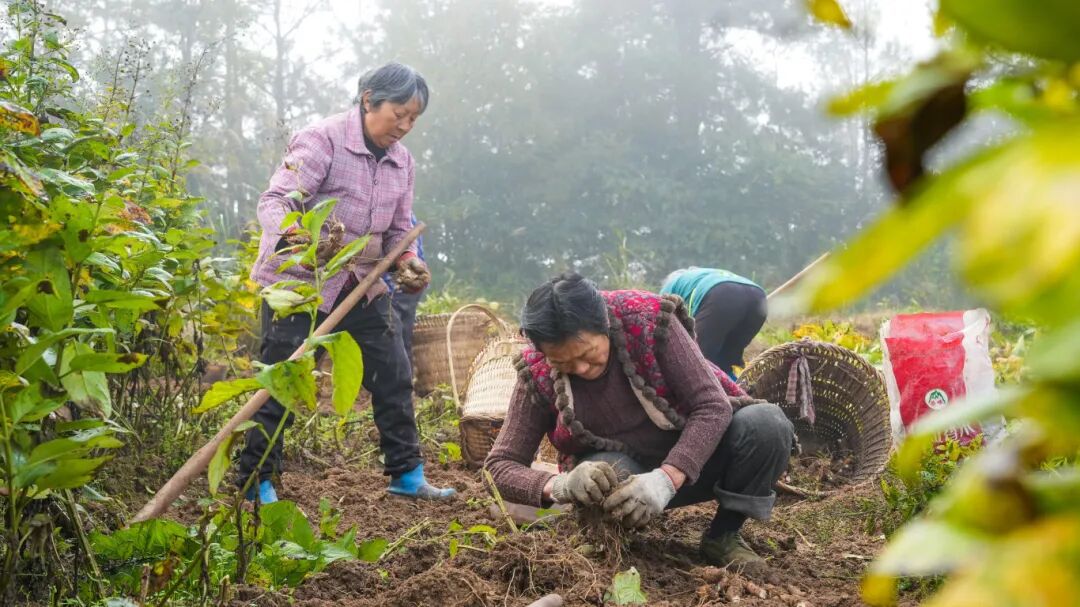 冬日清晨,巴中市平昌县青云镇青林社区晨雾还没散尽,山梁上中药材种植基地的玄参田里已经热闹开来。20余名社区居民三五成组,躬身挥锄,带着泥土气息的玄参被连根挖出,轻轻地放进背篓。