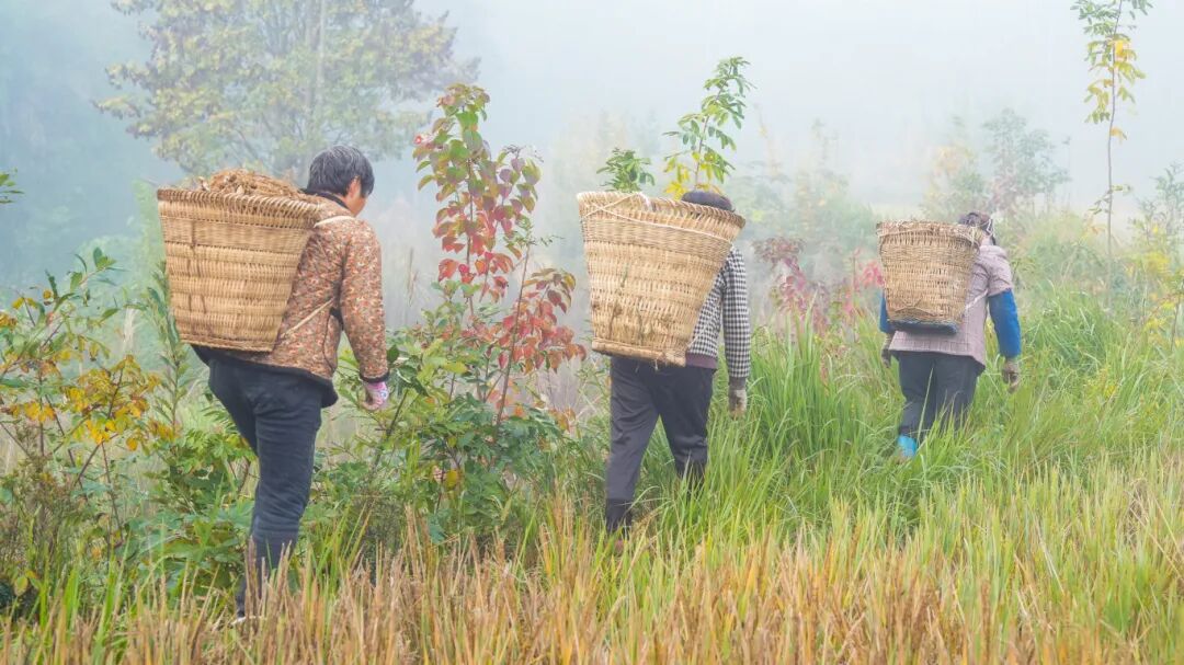 说话间,李兰英身旁的几个背篓都装满了。“走了走了,先把这些背到公路上的三轮车上,早运回去早处理。”李兰英拍了拍手上的泥大声说道,大伙跟着她,背着沉甸甸的背篓往田埂尽头走去。