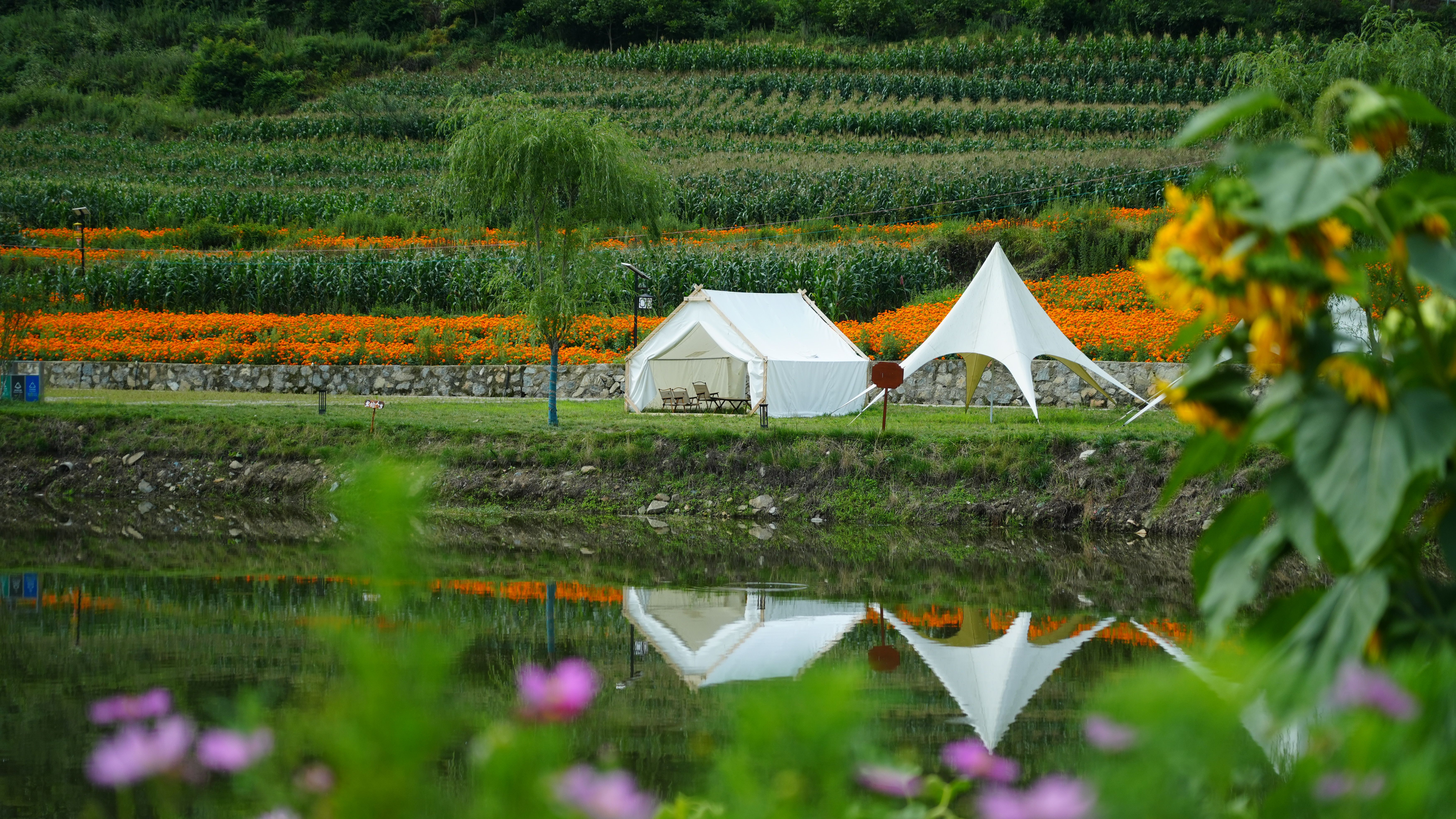 此外,该村还积极整合多方资源,推动产业多元化发展:引进泸定县川际生态农业公司,打造了320余亩果蔬套种基地;携手林发投公司开发了170余亩万寿菊种植基地;同时,村集体自主运营了独具特色的海子湖生态旅游项目,共同编织了一张优势互补、协同发展的产业网。村民任启才高兴的告诉记者:“农忙时可以在基地务农,旅游旺季就去游船接待游客,一年四季都能在家门口挣到钱,日子越过越红火。”