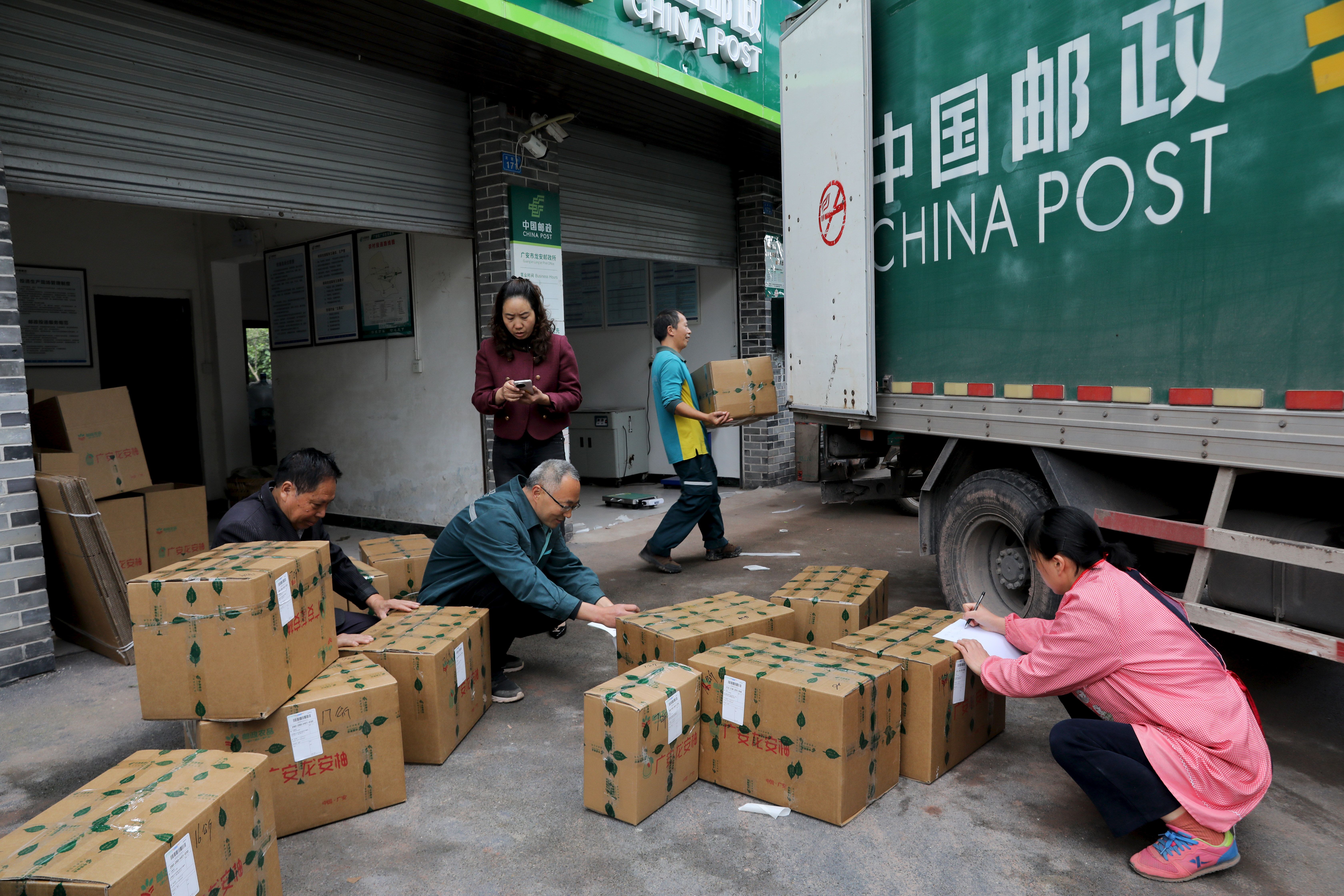 中国邮政集团有限公司广安市广安区分公司项目经理潘高雄,在龙安柚丰收的季节,都会与同事并肩作战,确保当天采摘的柚子都能迅速发出。
