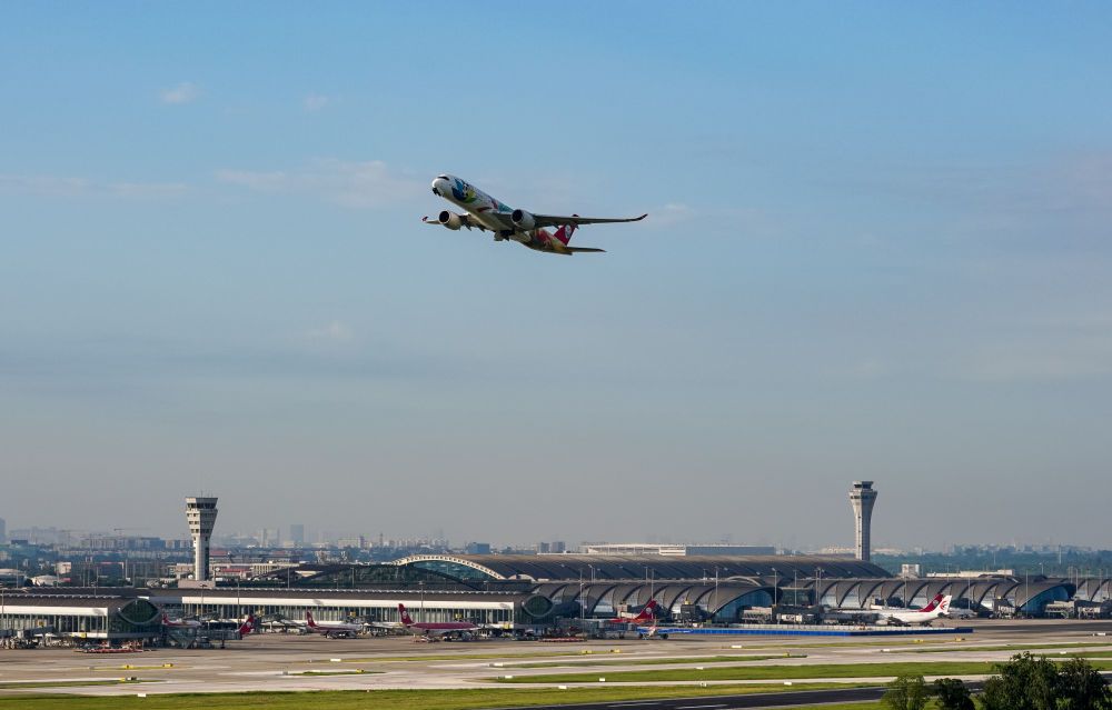 2025年7月21日,国产大飞机C919从双流国际机场起飞。新华社发(刘婷 摄)