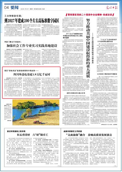 从国网四川省电力公司获悉,四川全口径外送电量已超1.9万亿千瓦时。这一规模相当于江苏、浙江、安徽三省全年用电量之和,标志着四川落实“西电东送”能源战略取得丰硕成果,清洁能源在全国范围内实现了优化配置。目前,四川电网跨区跨省外送能力达6260万千瓦,居全国首位。