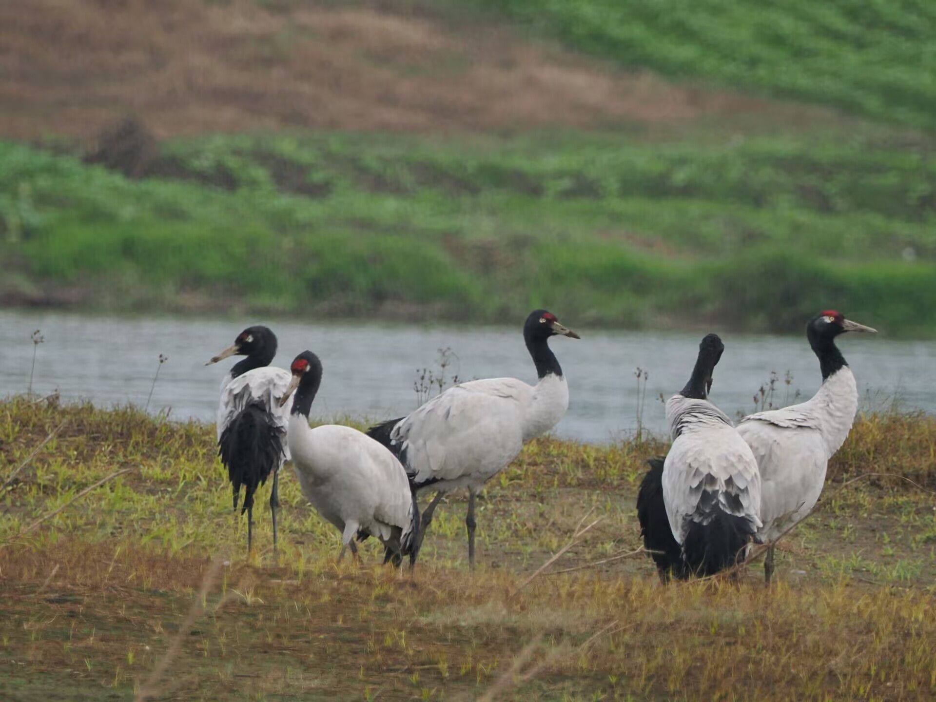 中华秋沙鸭的“驻足”尚未褪色,沱江流域的另一处生态沃土又迎来了新的“高原精灵”。11月19日,富顺县长滩镇沱江中的中坝冲积岛上,20余只国家一级保护动物黑颈鹤在此栖息停歇,这是我县乃至全市范围内首次记录到黑颈鹤集群现身。