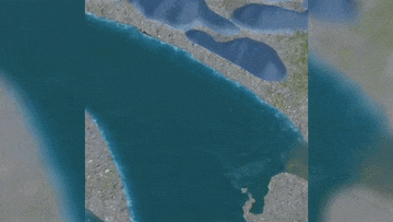 鱼嘴分水堤因形似鱼的嘴巴而得名,堤身用沙石堆砌而成,宽厚结实,又名金钢堤。岷江水在这里被鱼嘴分为内外两江。图中下边是岷江的正流叫外江,主要用于泄洪排沙。上边是内江,是李冰开掘的人工河。新华社记者 刘坤 摄