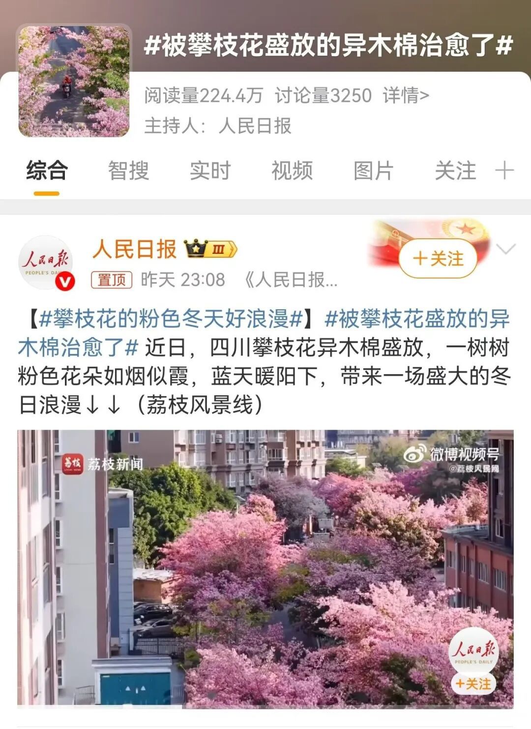当朔风卷着寒意掠过北方,四川最南端的阳光却依旧温柔,人民日报微博里盛赞的异木棉,正以一袭粉白霓裳,为这座 “阳光花城” 铺就冬日最浪漫的诗行。
