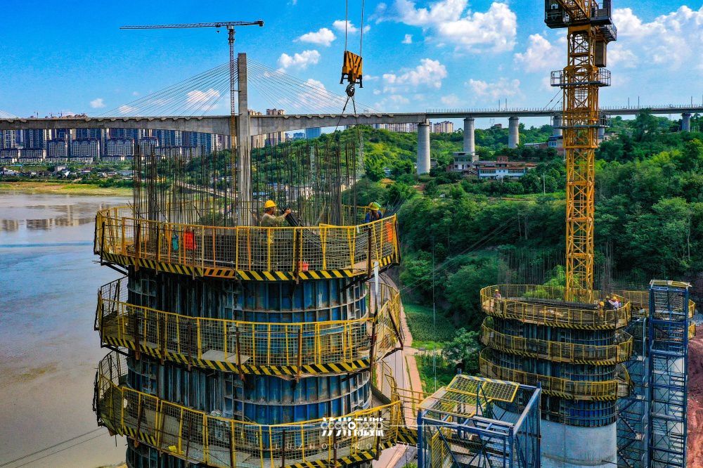 2023年7月17日16时许,位于江阳区况场街道境内的西部陆海新通道隆泸叙铁路施工现场,建设者们身着工作服,头戴安全帽,系上安全绳,冒着高温进行铁路桥墩施工,现场热火朝天。