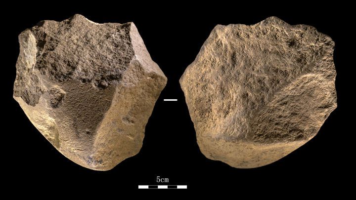 这是2020年6月5日拍摄的皮洛遗址重要遗物——砍砸器。新华社发(四川省文物考古研究院供图)