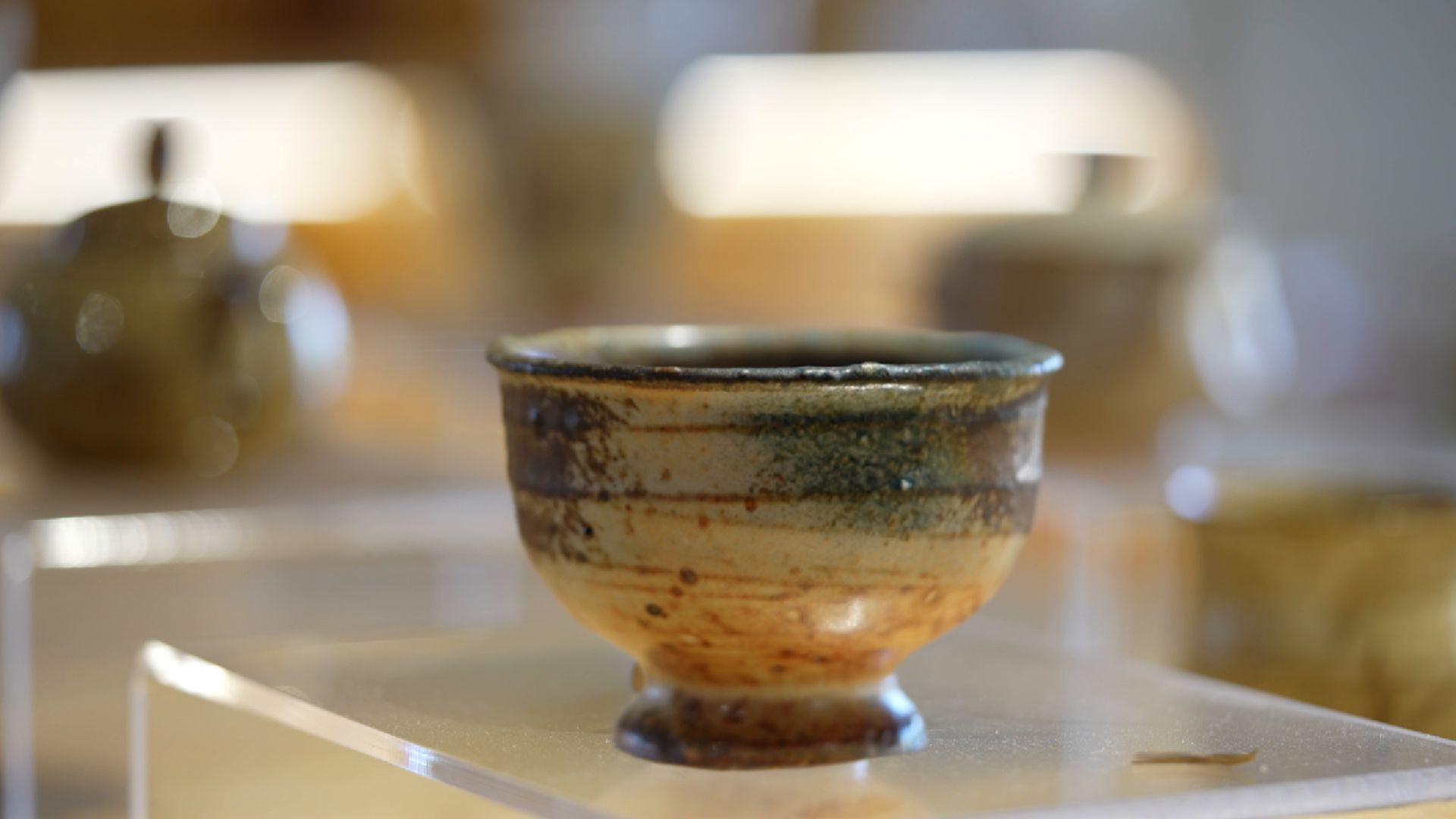 隆昌陶非遗传承人邓双向观观展示了一款“躺不平杯”:“这个杯子是不倒翁设计,现在年轻人总说‘躺平’,但生活里其实很难真正‘躺平’,我们就把年轻人喜欢的潮玩元素融入了产品中。”