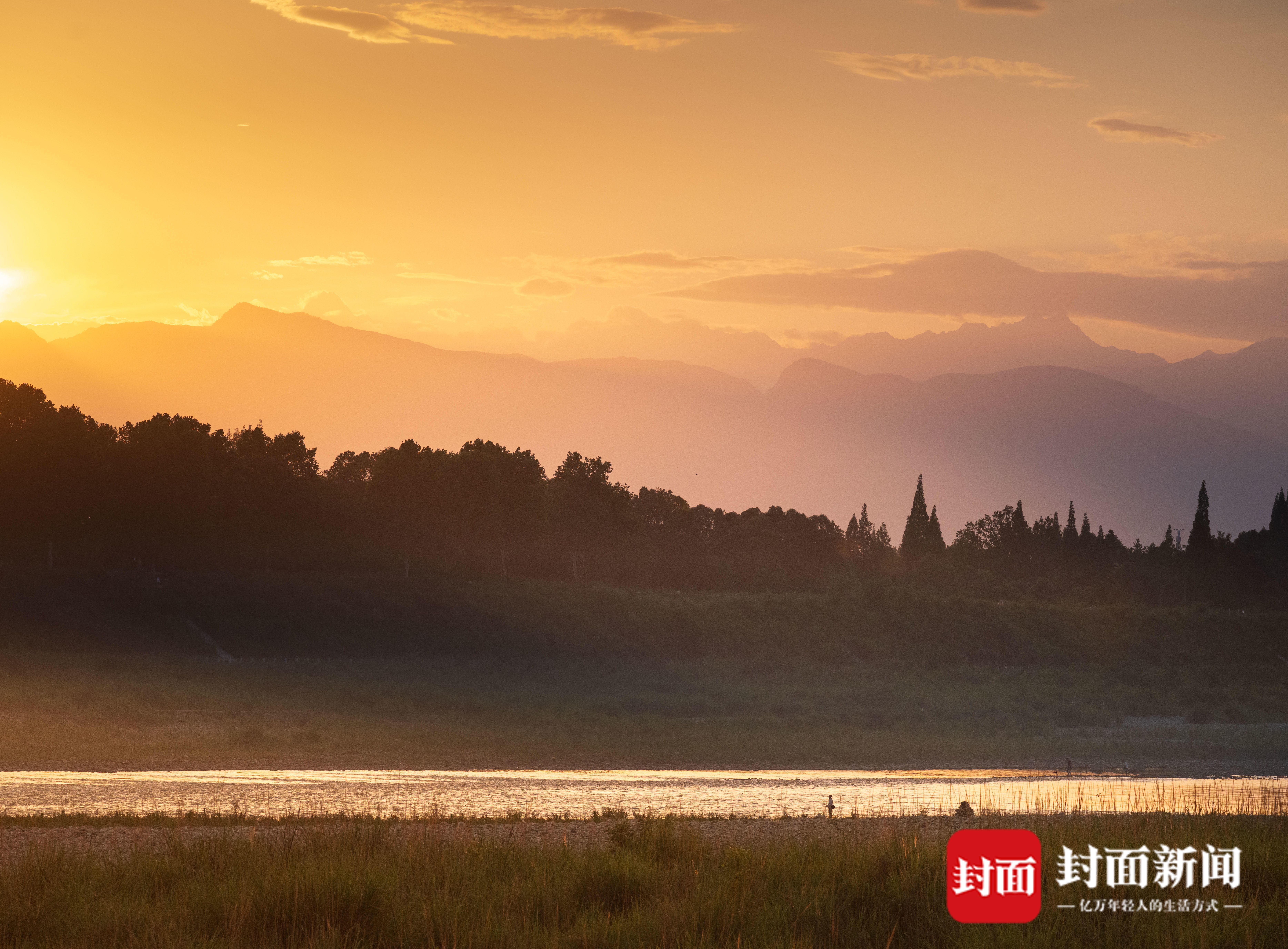 2025年6月10日,成都市温江区,黄昏里的雪山剪影。 杨涛 摄
