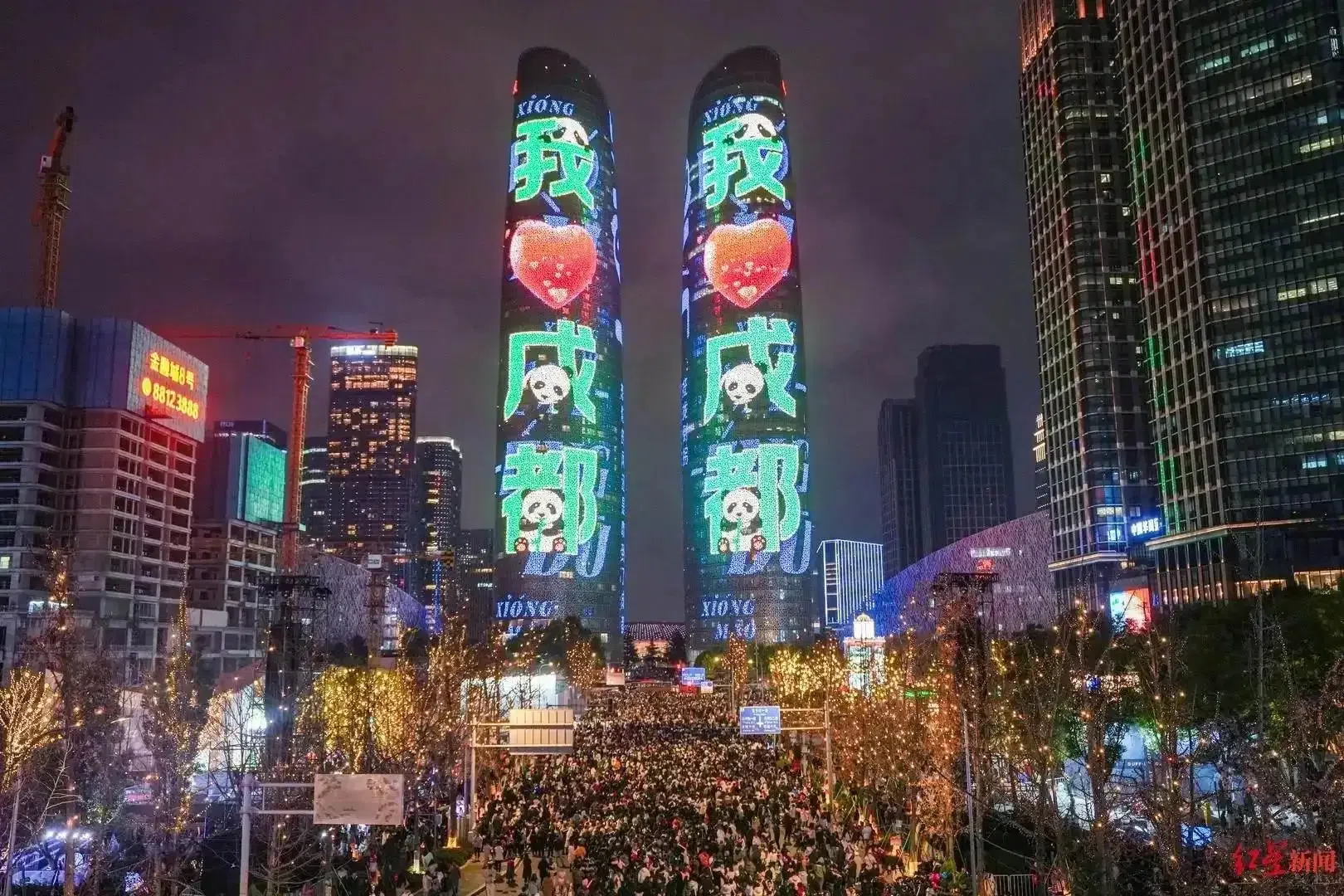 跨年夜双子塔的灯光秀(图据红星新闻)